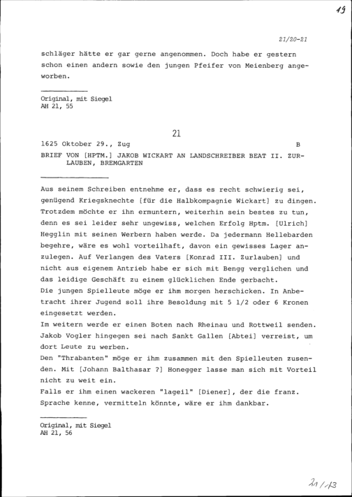 Schreiben von Jakob Wickart, Hauptmann, an Beat II. Zurlauben, Landschreiber, Br...