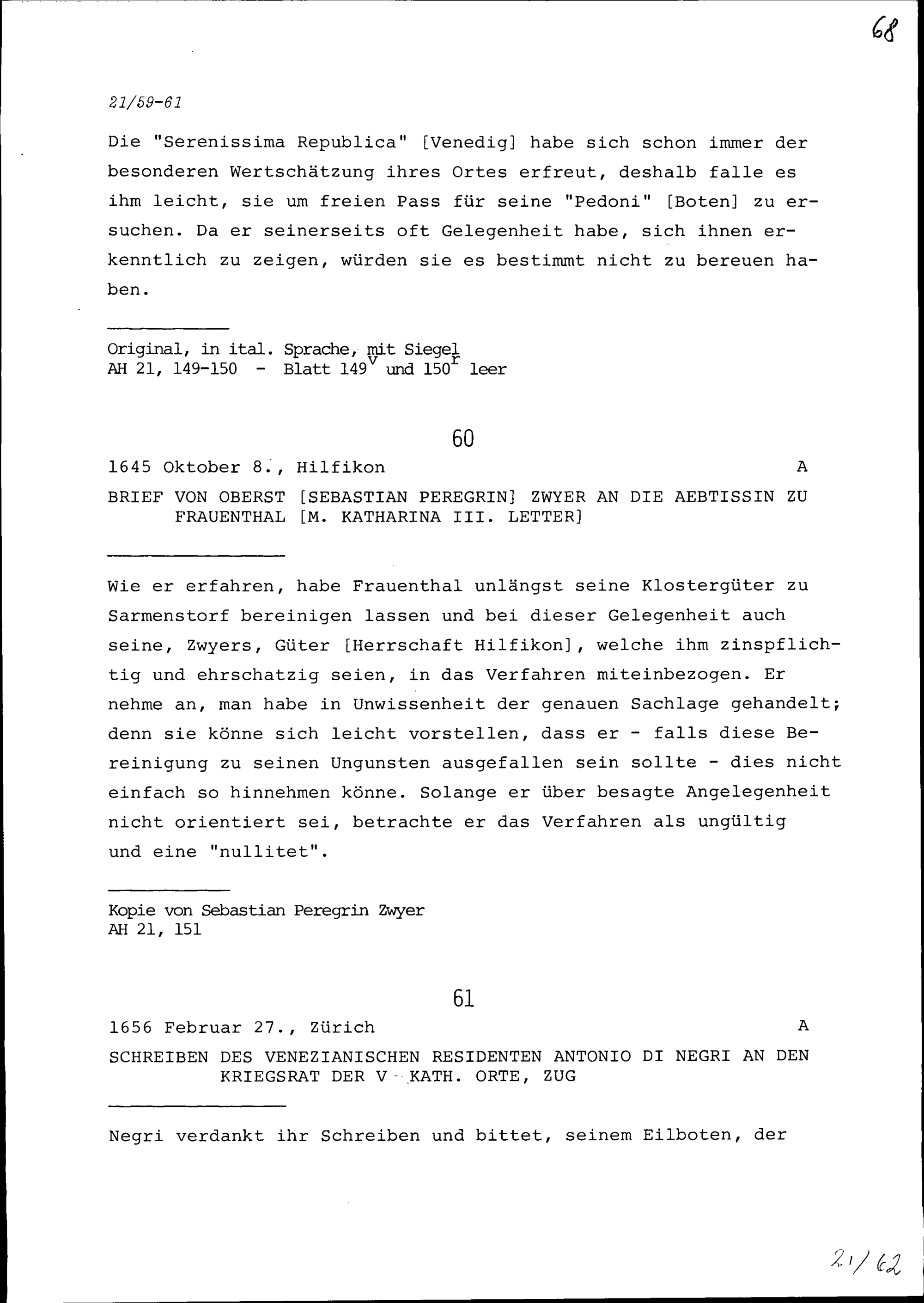 Schreiben von Antonio di Negri, Resident von Venedig, an Ammann und Rat von Stadt...
