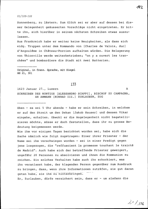 Schreiben von Alfons von Sonnenberg an Beat II. Zurlauben, Ammann, Zug