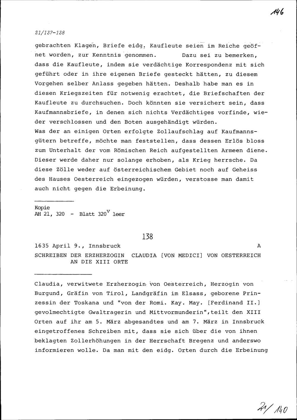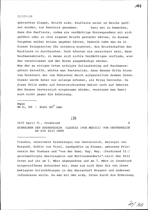 Schreiben von Wolfgang Rudolf von Ossa zu Dahl, Kriegsrat des Römischen Reiches, an die Dreizehn Orte