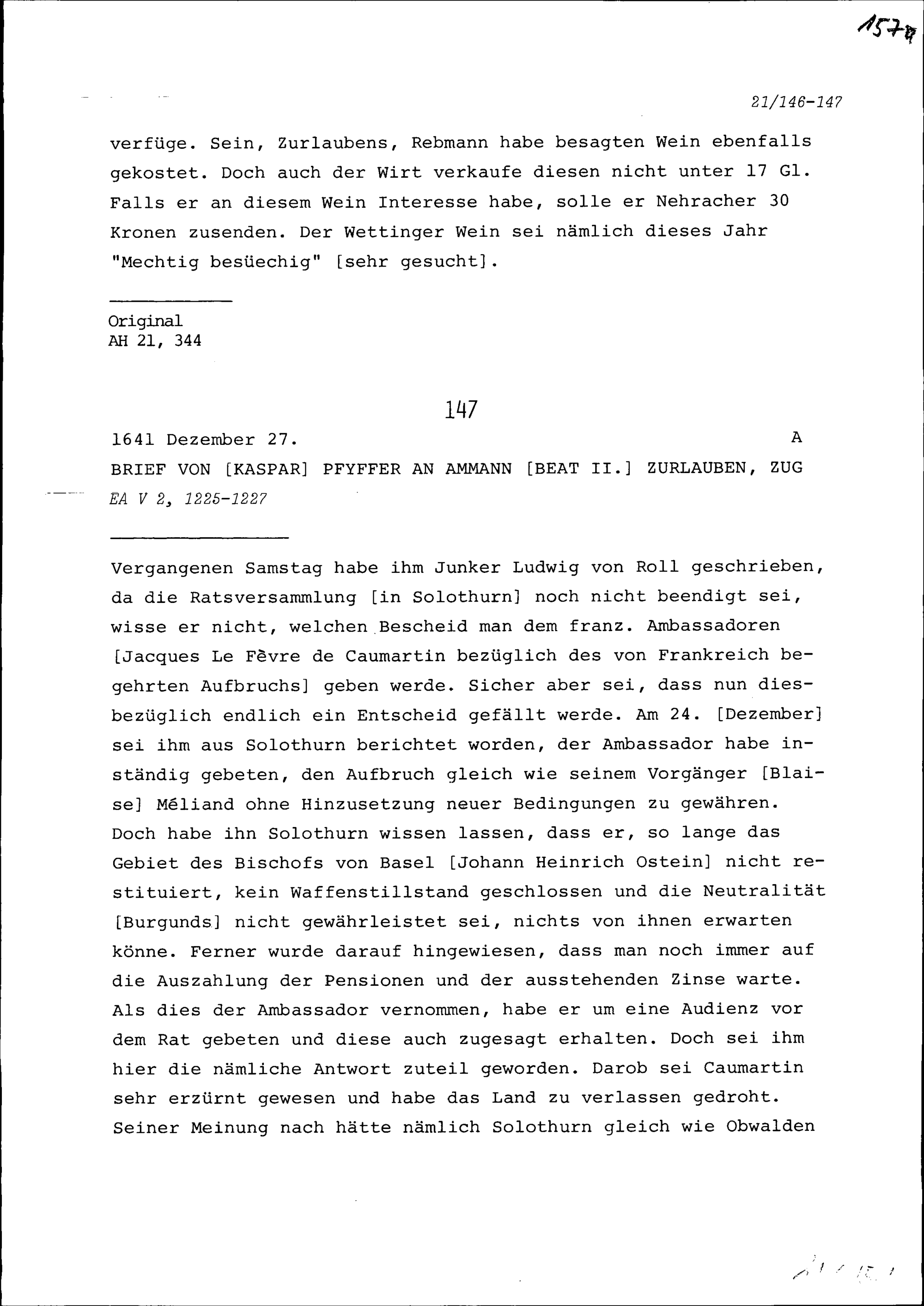 Schreiben von Johann Gebhard Zumbach, Schreiber der Abtei Wettingen, an Beat II. Zurlauben, Zug