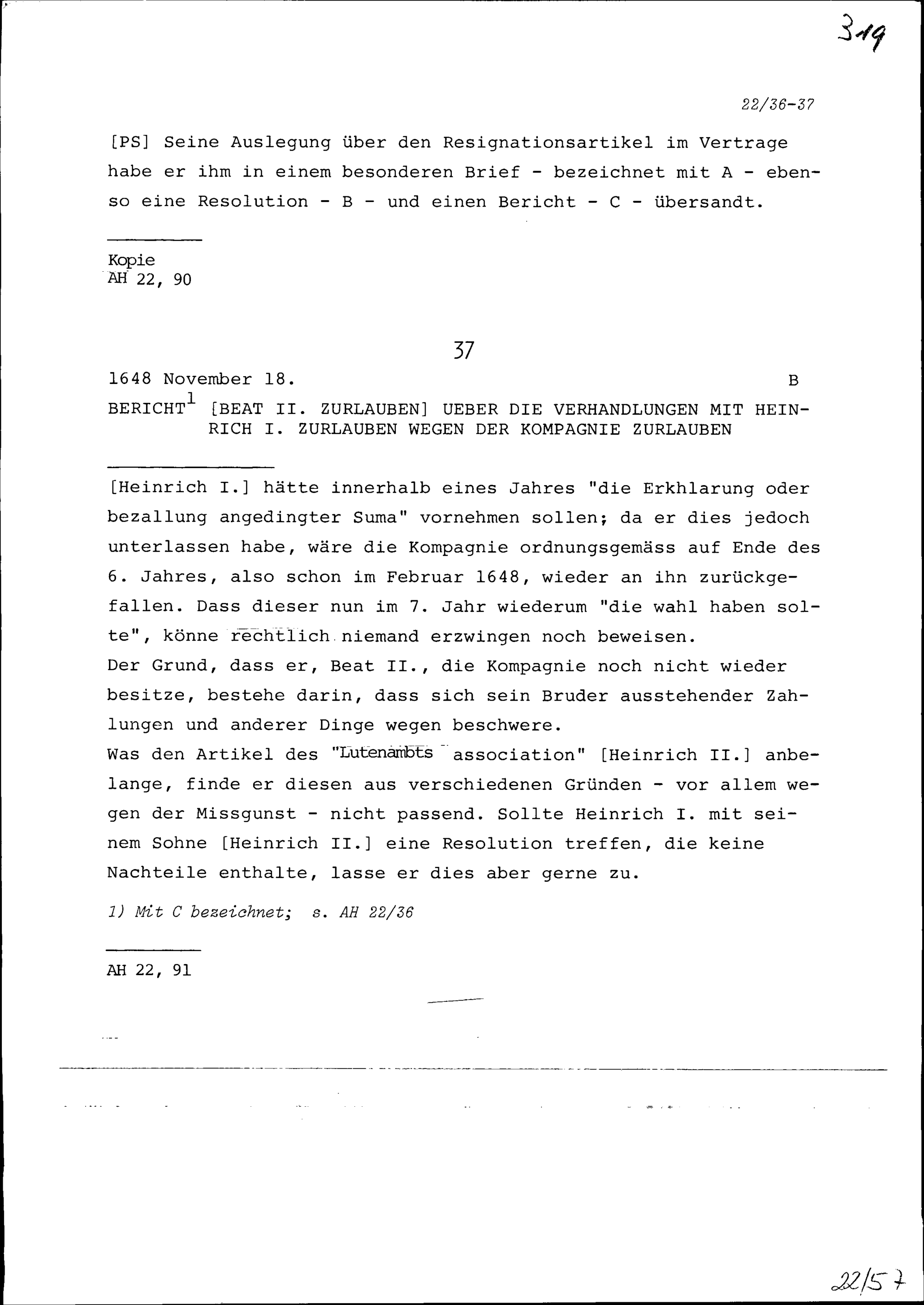 Schreiben von Beat II. Zurlauben an Johann Balthasar Honegger, Schwager