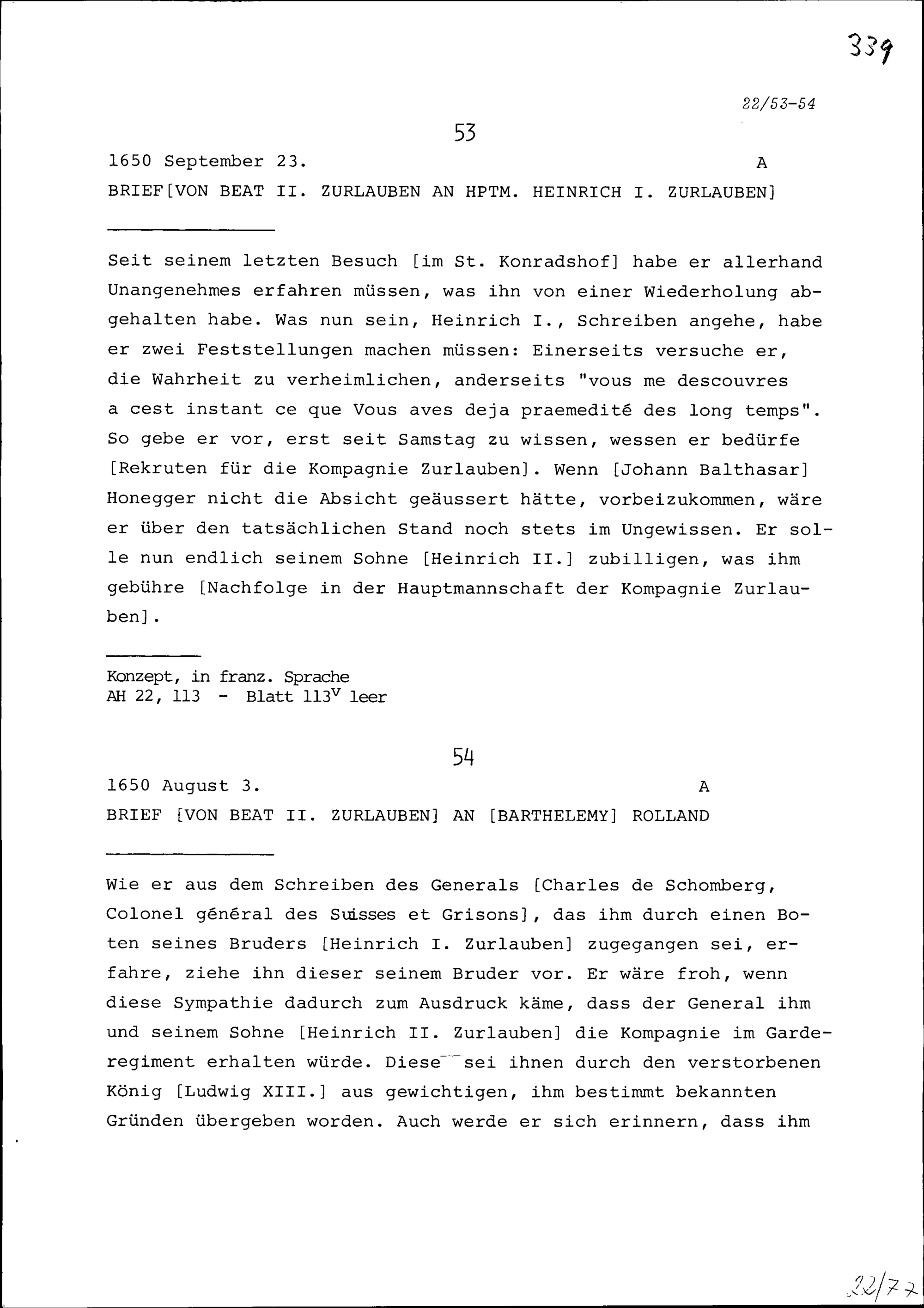 Schreiben von Beat II. Zurlauben an Barthélémy Rolland