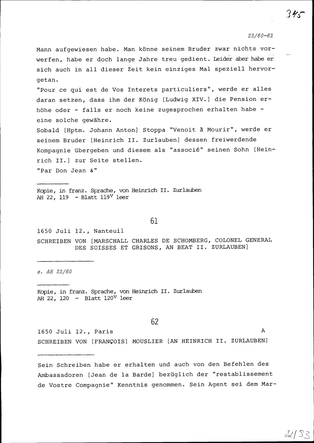 Schreiben von François Mouslier an Heinrich II. Zurlauben