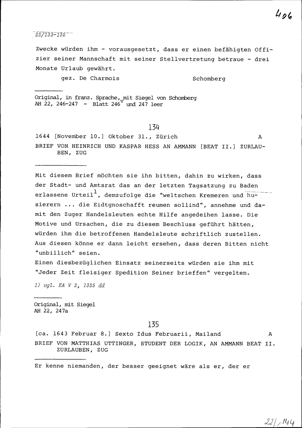 Schreiben von Matthias Uttinger, Student der Logik, an Beat II. Zurlauben, Ammann,...
