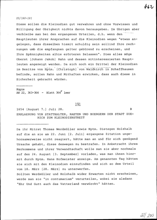 Erklärung von Hans Berger, Obmann, Statthalter sowie Rat und Bürger der Stadt Zürich, im Kleinodienstreit