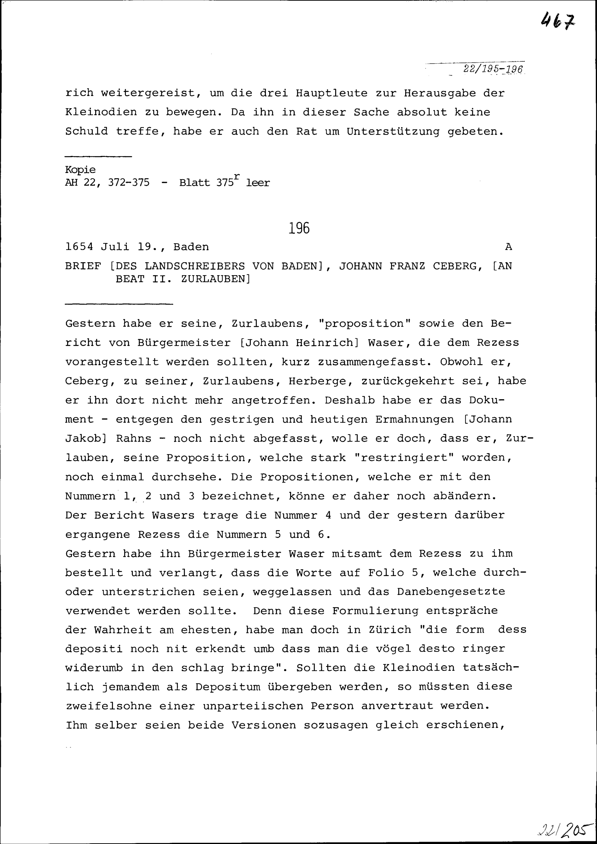Bericht von Johann Jakob Rahn an Beat II. Zurlauben über die Entwendung der Kleinodien...