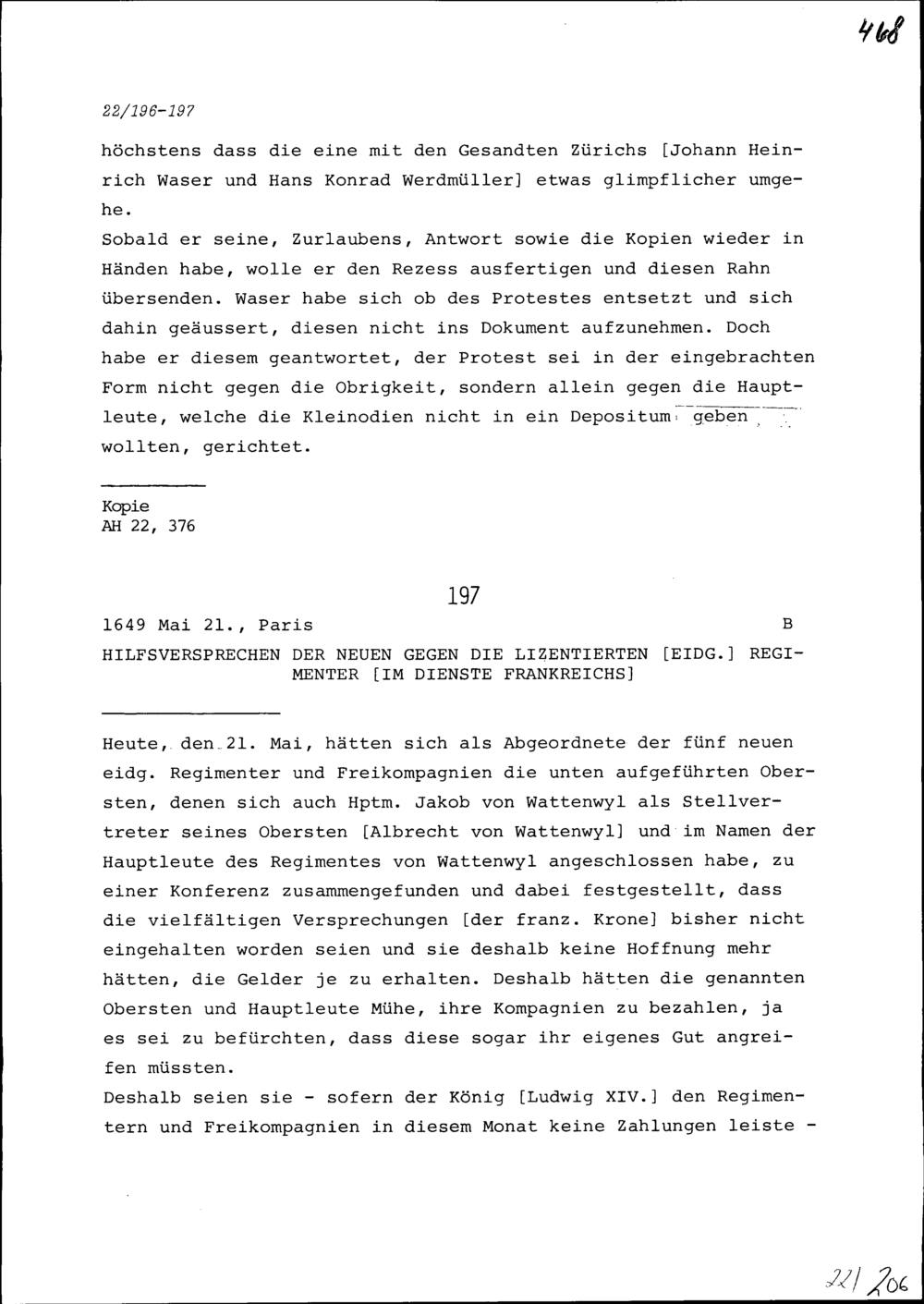 Schreiben von Johann Franz Ceberg, Landschreiber von Baden, an Beat II. Zurlaube...