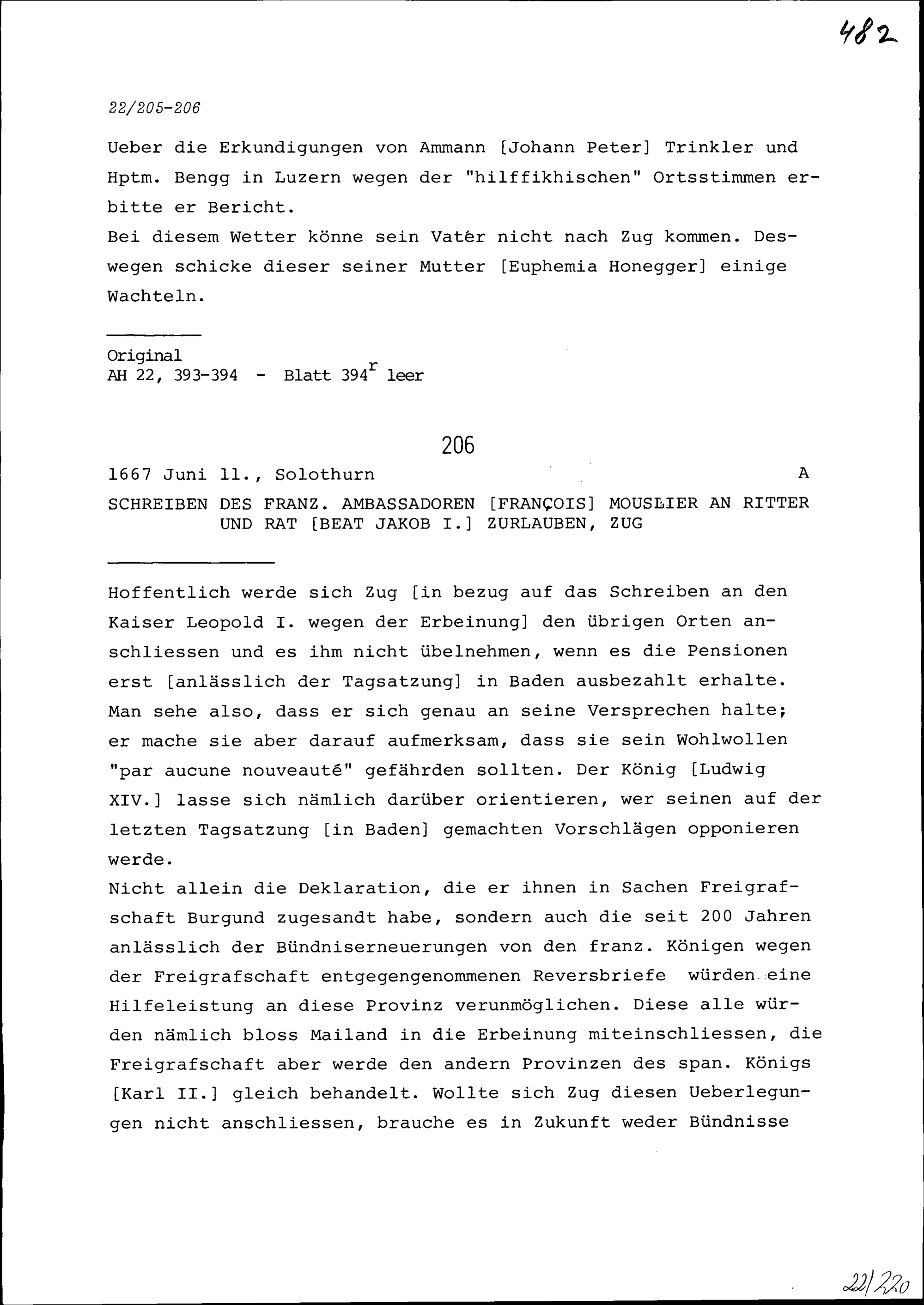 Schreiben von Heinrich Ludwig Zurlauben an Beat II. Zurlauben, Ammann, Zug