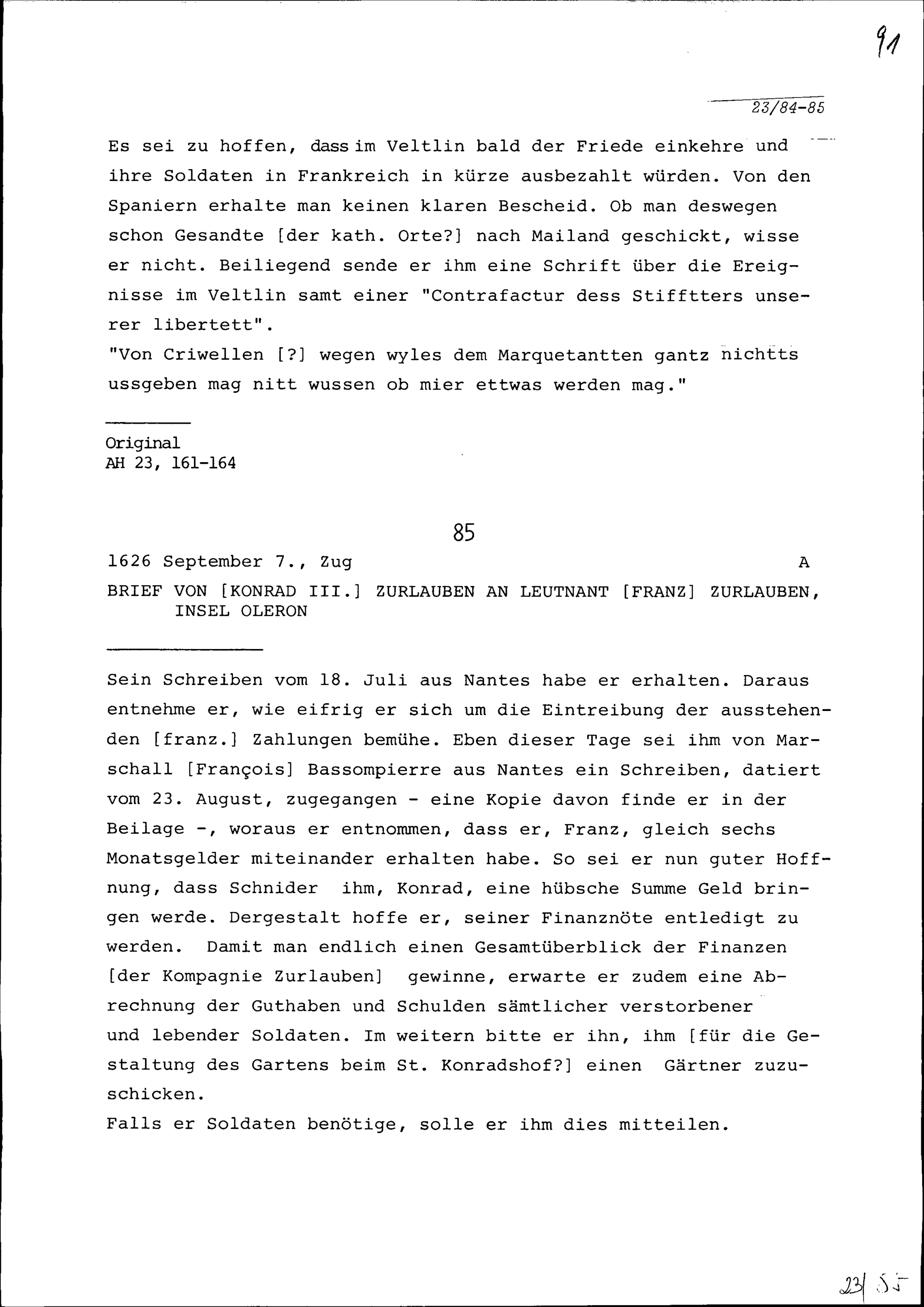 Schreiben von Konrad III. Zurlauben an Franz Zurlauben, Leutnant