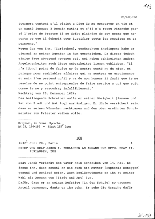 Schreiben von Alessandro Scappi, Nuntius und Bischof von Campagna, an Konrad III. Zurlauben