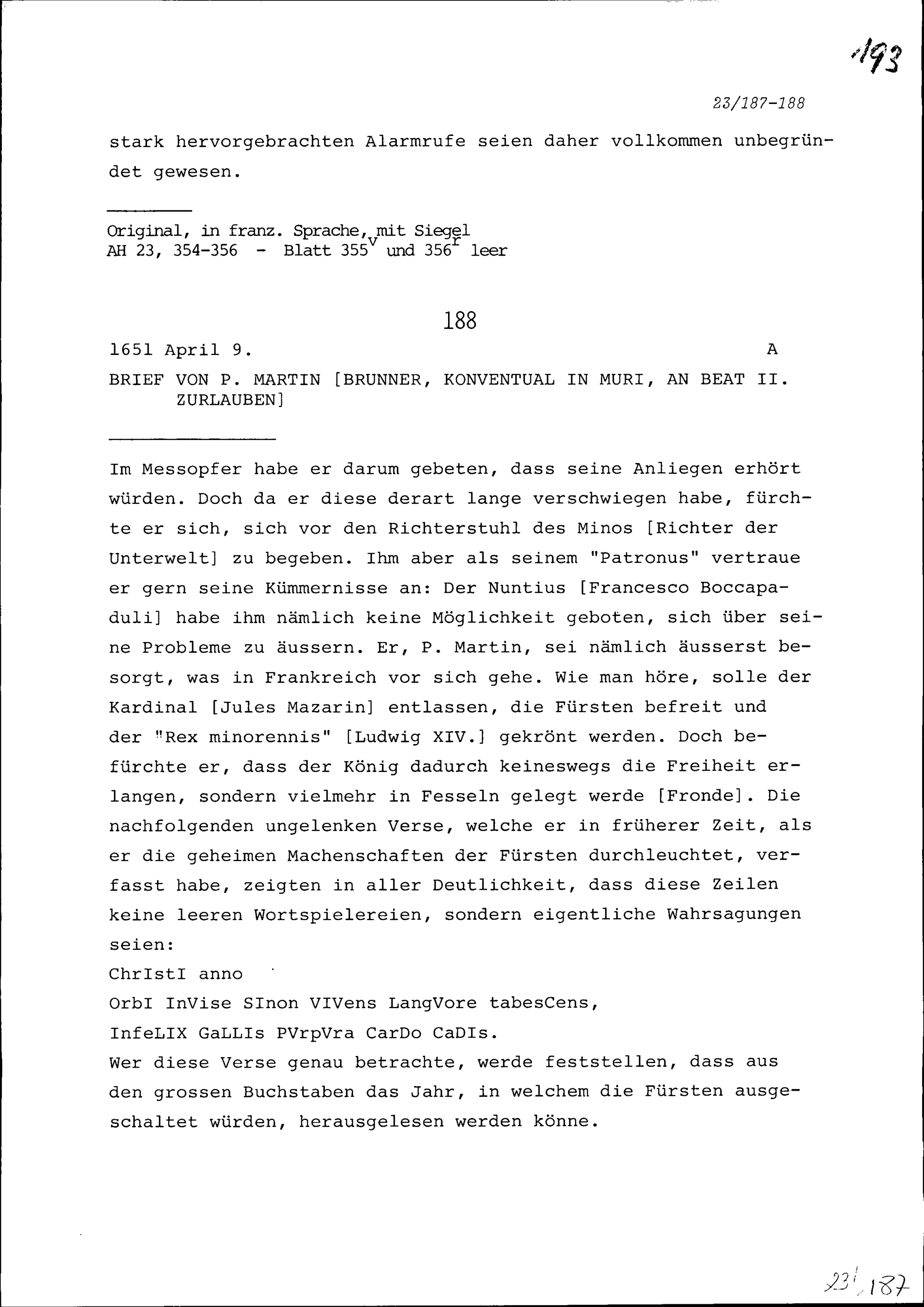 Schreiben von Benoît II. Cize, Baron de Grésy, Ambassador von Savoyen, an Beat Jakob...
