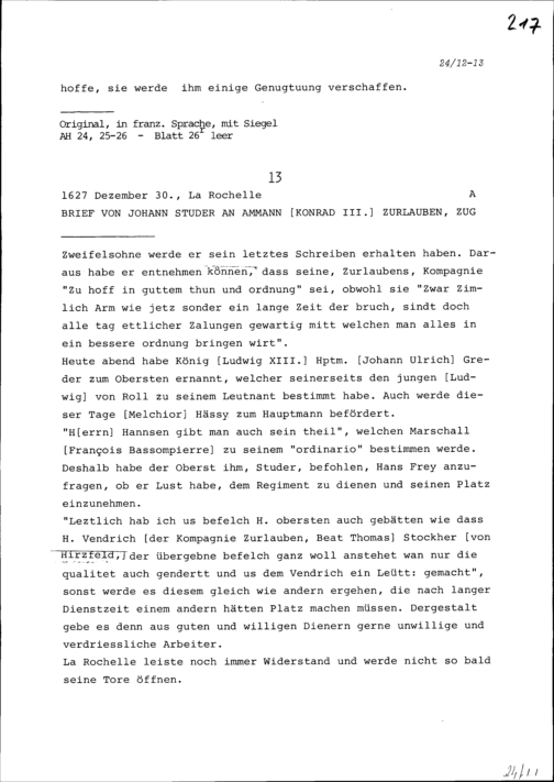 Schreiben von Robert Miron, Ambassador von Frankreich, an Konrad III. Zurlauben, Ammann und Gardehauptmann, Tagsatzungsgesandter in Luzern