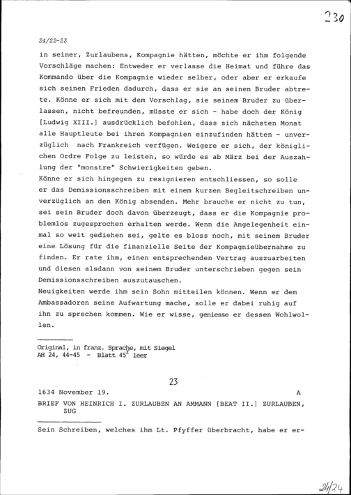 Schreiben von Barthélémy Rolland an Beat II. Zurlauben, Ammann und Gardehauptmann, Zug