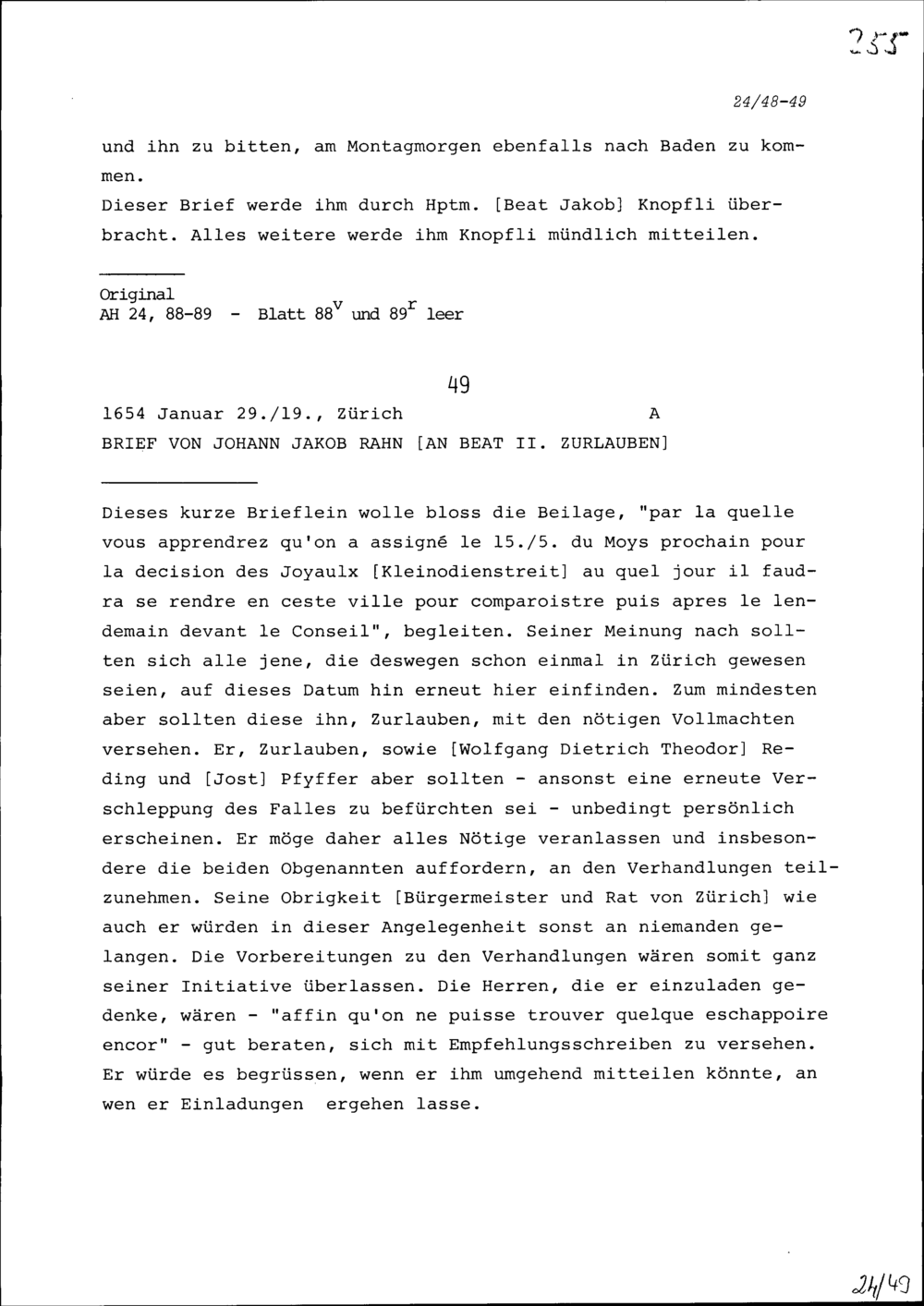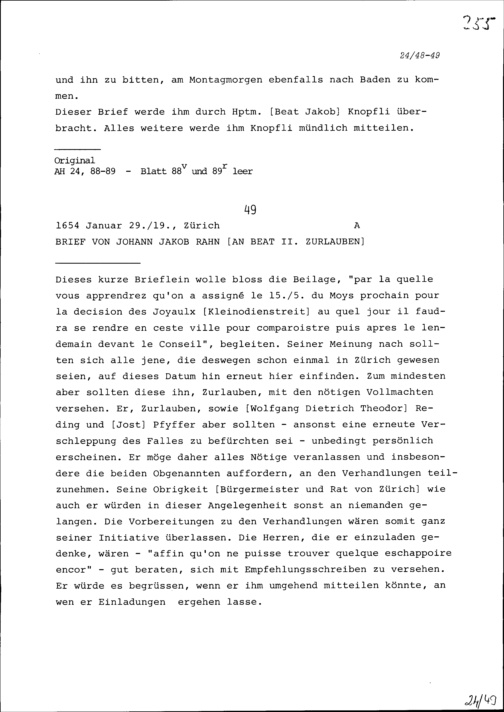 Schreiben von Hans Wilhelm Grimm, im Namen der Hauptleute, an Beat II. Zurlauben, Ammann, Bremgarten oder anderswo