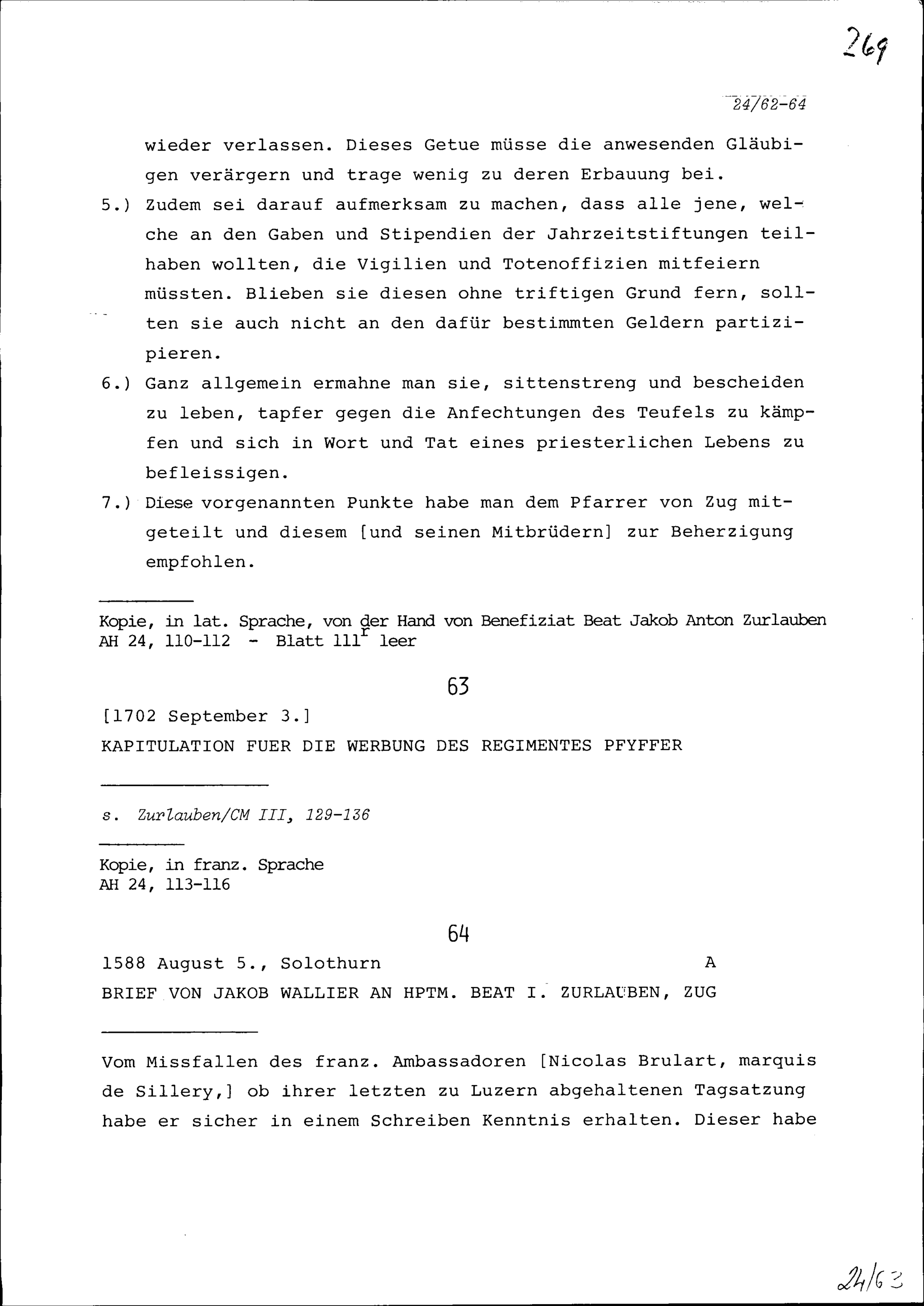 Schreiben von Jakob Wallier an Beat I. Zurlauben, Hauptmann, Zug
