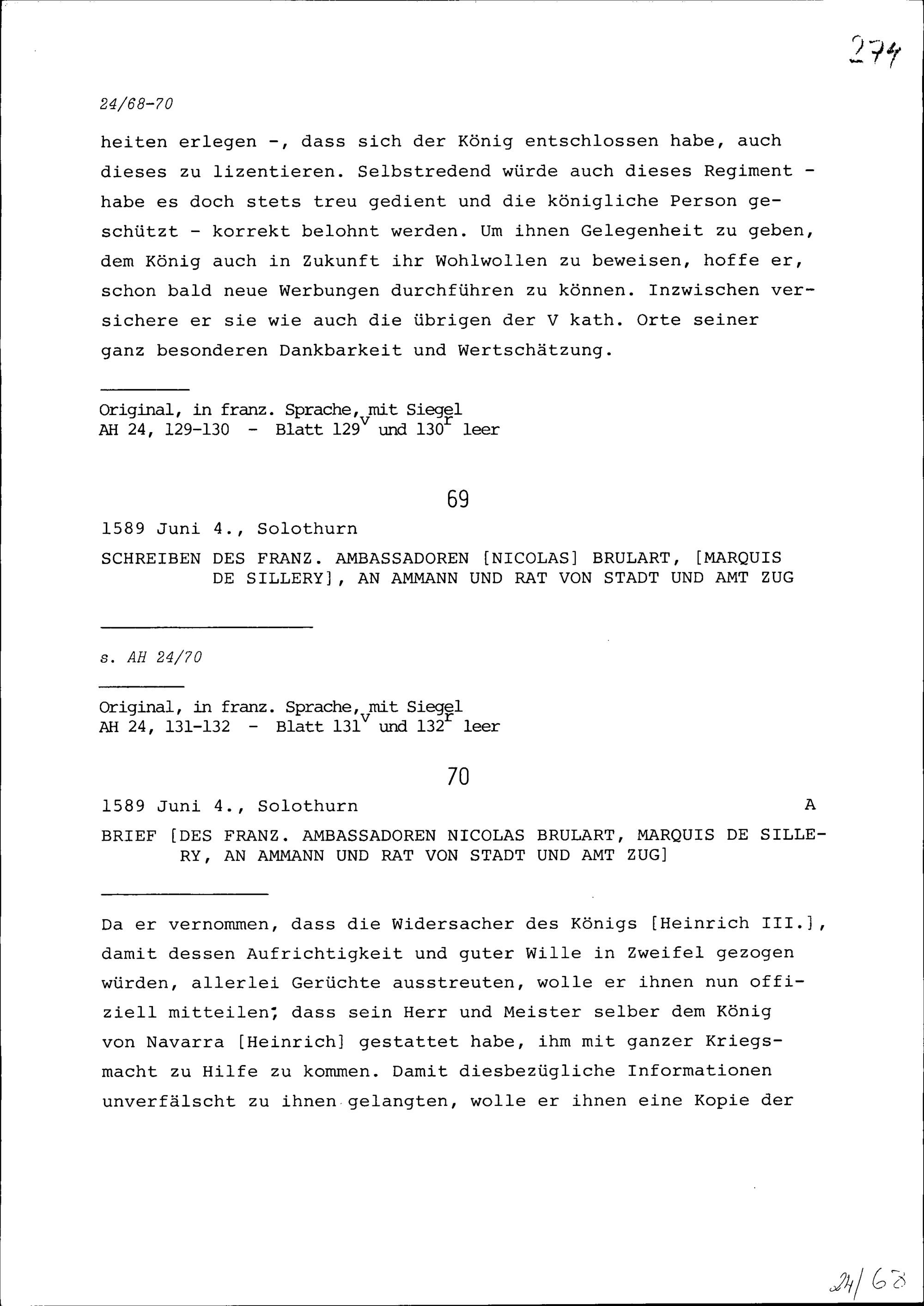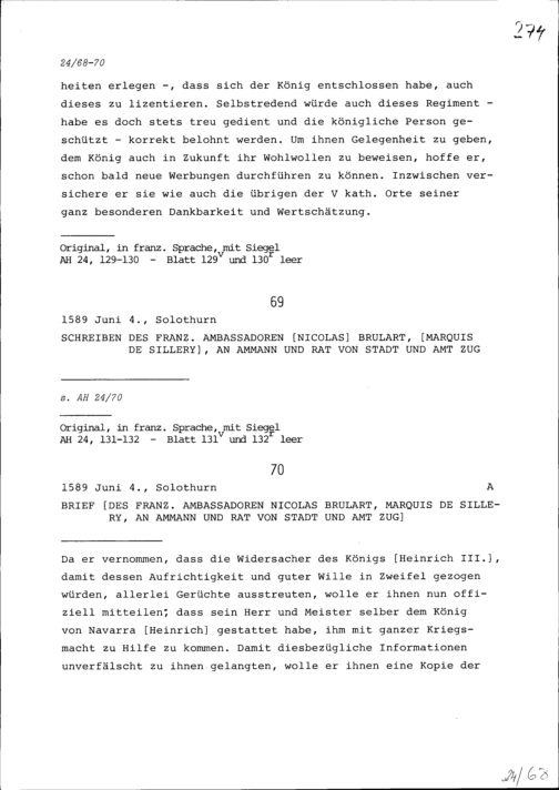 Schreiben von Nicolas Brûlart, Marquis de Sillery, Ambassador von Frankreich, an...