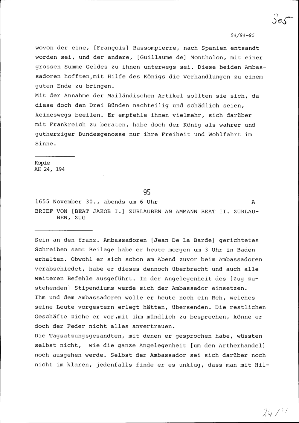 Schreiben von Etienne Gueffier, Ambassador von Frankreich in Bünden, an die Gemeinden der Drei Bünde