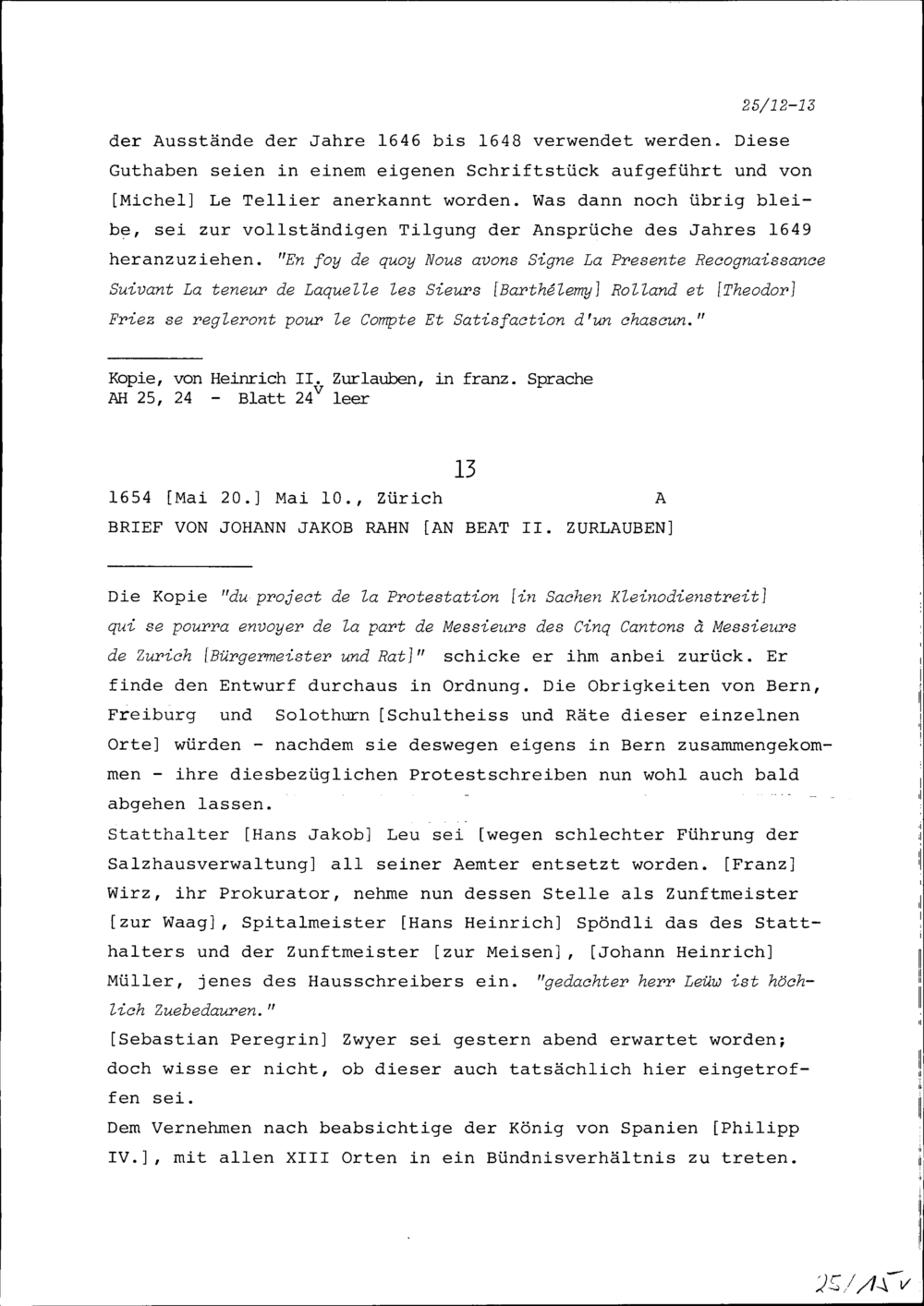 Erklärung von Jean-Antoine de Reynold, von Jacques de Stavay-Mollondin, von Johann Heinrich Lochann und von Jacques Guy de Haudanger, Oberste und Hauptleute