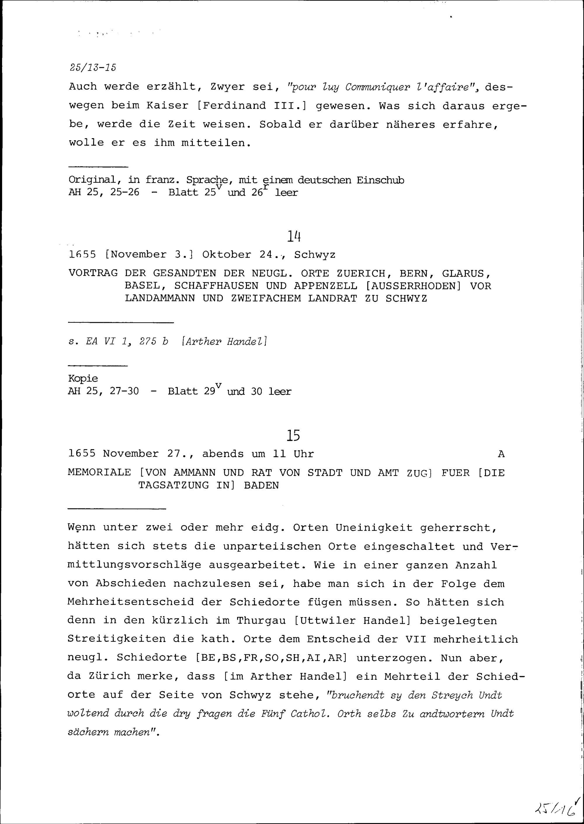 Bericht des Ammanns und Rats von Stadt und Amt Zug für die Tagsatzung in Baden