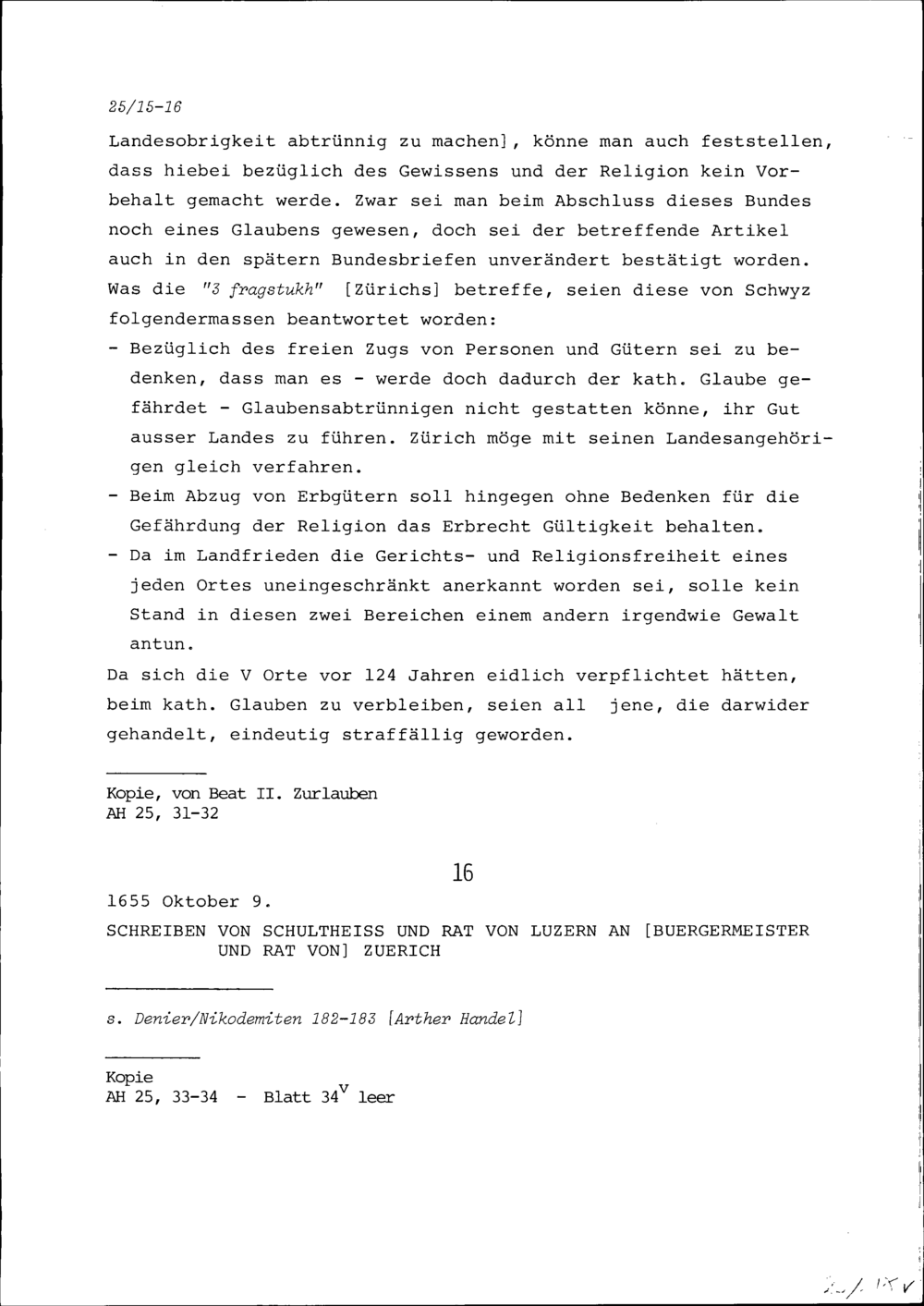 Bericht des Ammanns und Rats von Stadt und Amt Zug für die Tagsatzung in Baden