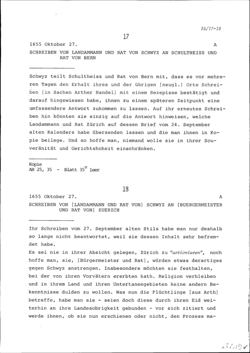 Schreiben des Landammanns und Rats von Schwyz an Bürgermeister und Rat Zürich