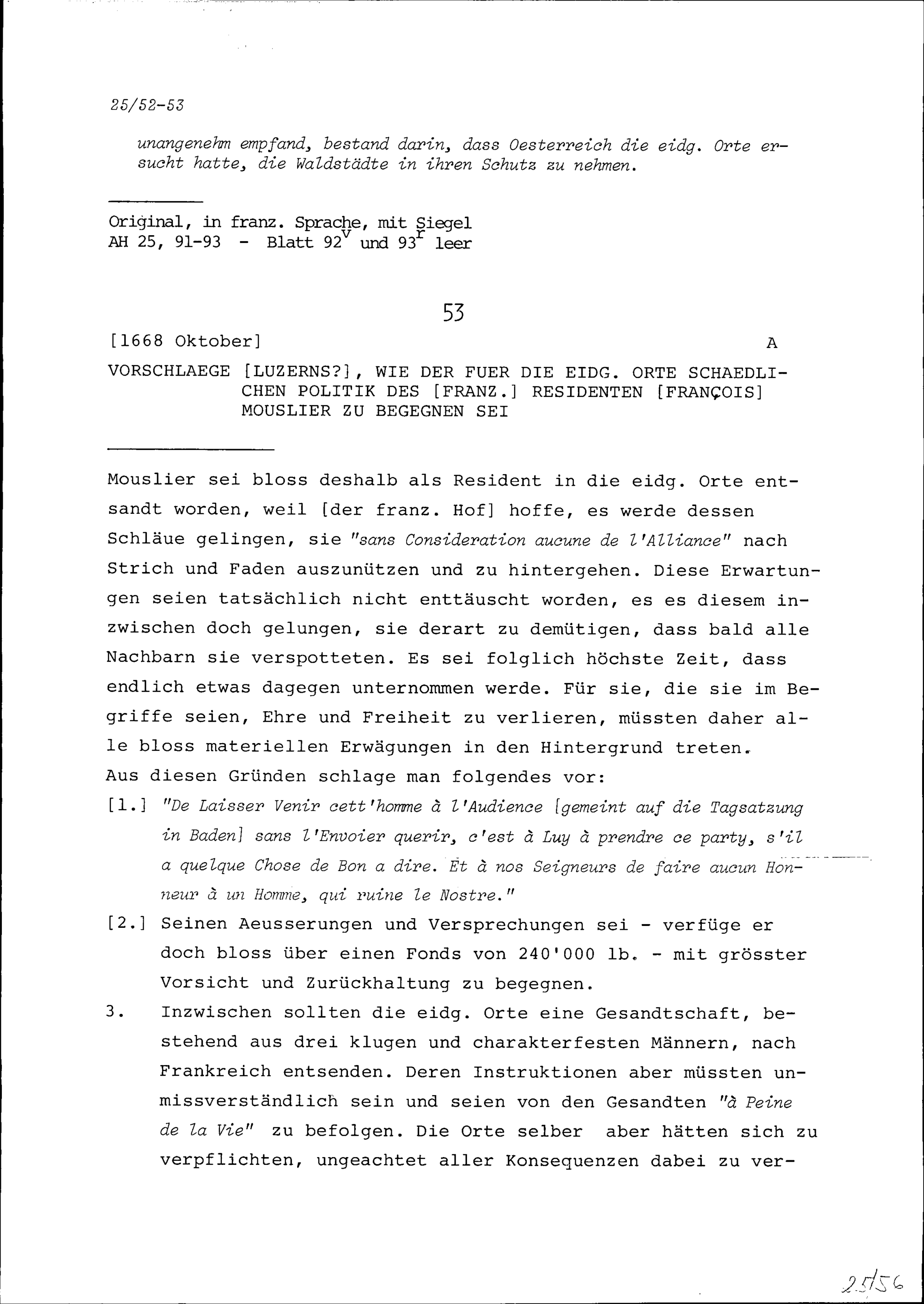 Schreiben von François Mouslier, Resident von Frankreich, an Beat Jakob I. Zurlauben, Zug