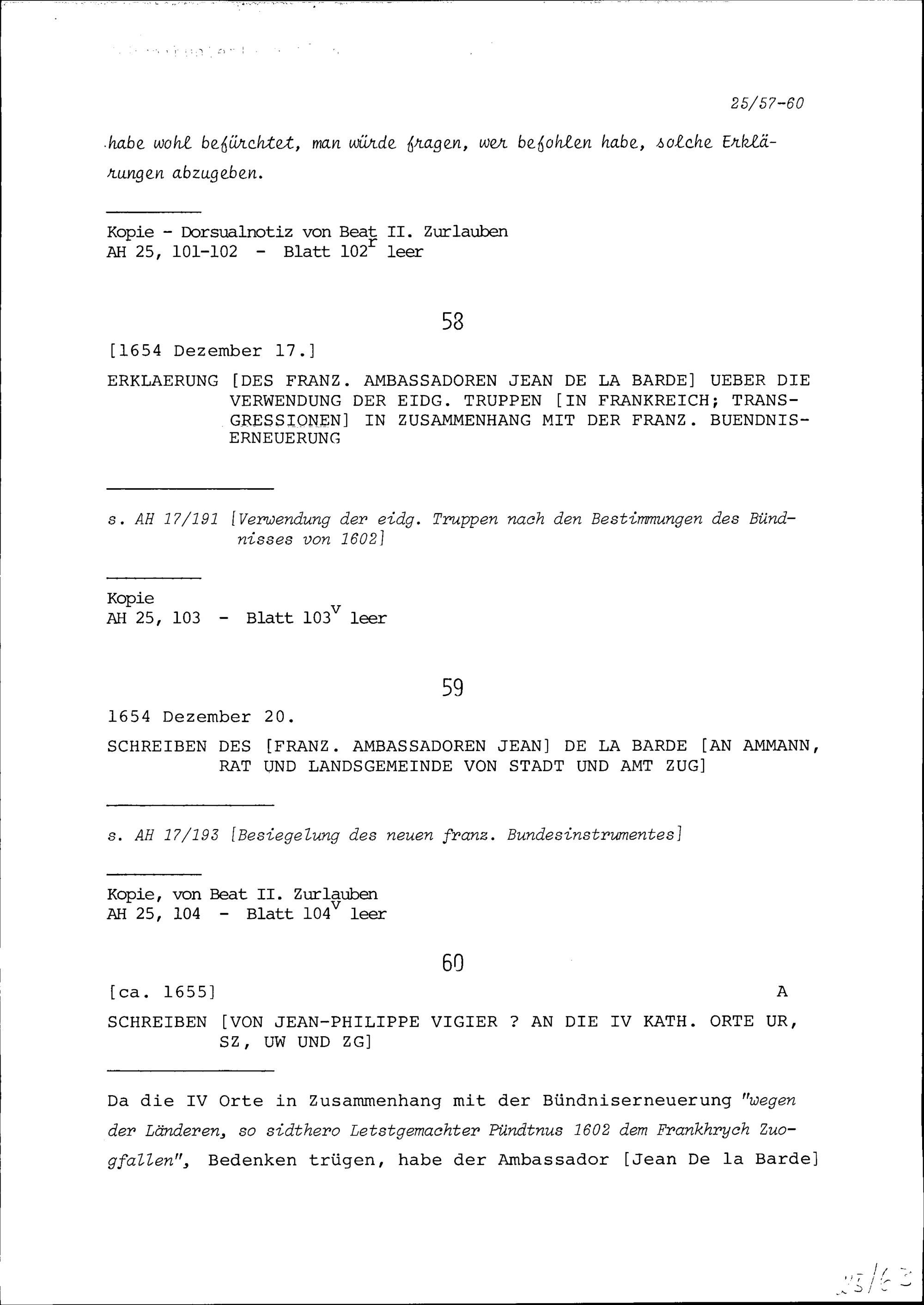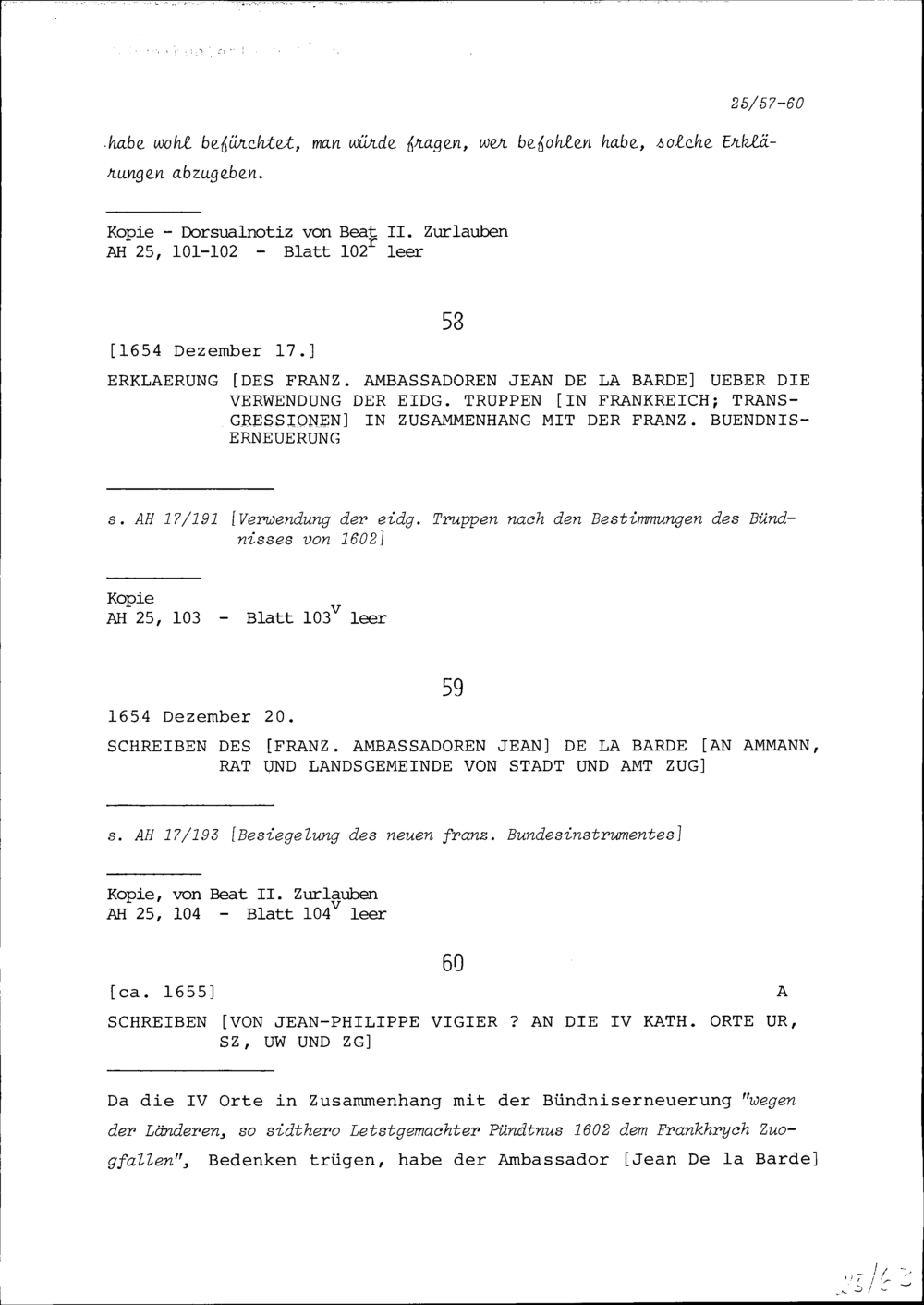 Schreiben von Jean-Philippe Vigier an die Vier Katholischen Orte Uri, Schwyz, Unterwalden (Ob- und Nidwalden) und Zug