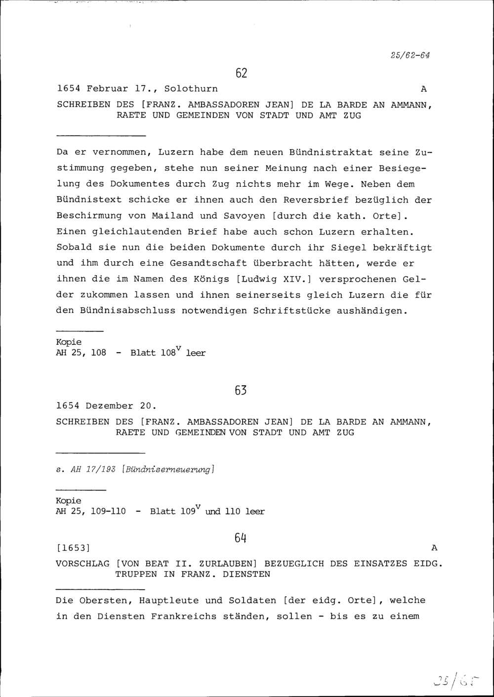 Vorschlag von Beat II. Zurlauben bezüglich des Einsatzes eidgenössischer Truppen in französischen Diensten