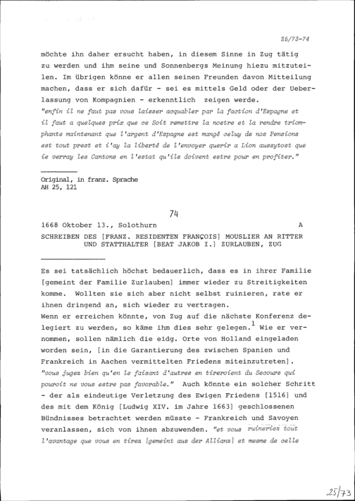 Schreiben von François Mouslier, Resident von Frankreich, an Beat Jakob I. Zurlauben