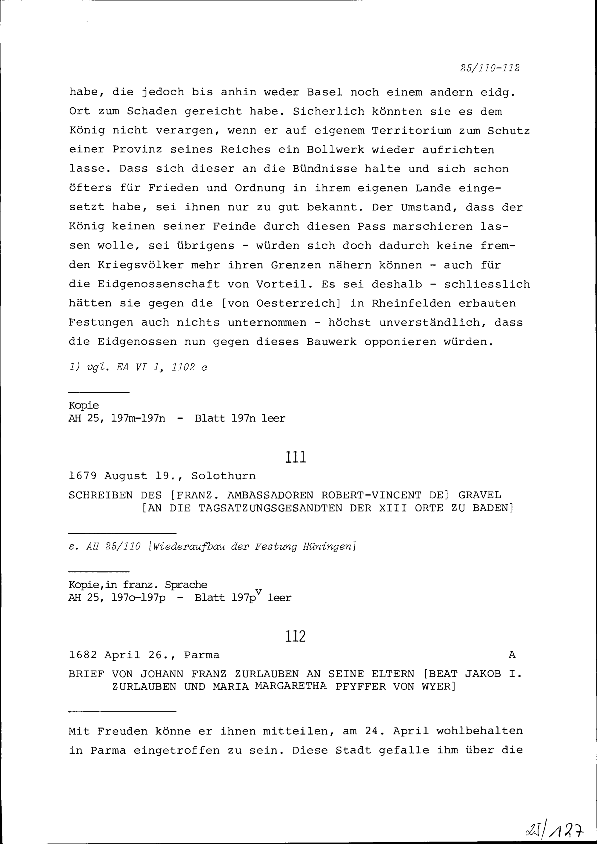 Schreiben von Johann Franz Zurlauben an Beat Jakob I. Zurlauben und Maria Margaretha Pfyffer von Wyer, seine Eltern