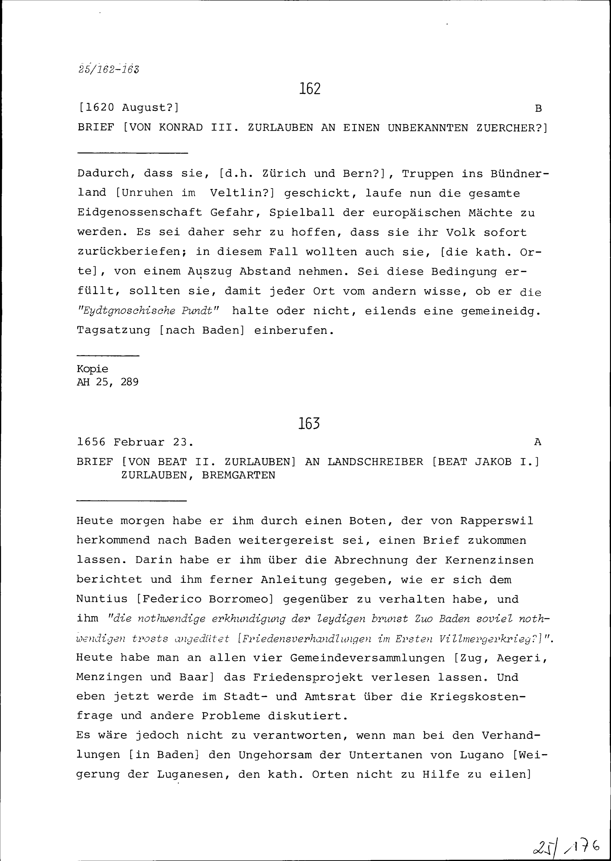 Schreiben von Beat II. Zurlauben an Beat Jakob I. Zurlauben, Landschreiber, Brem...