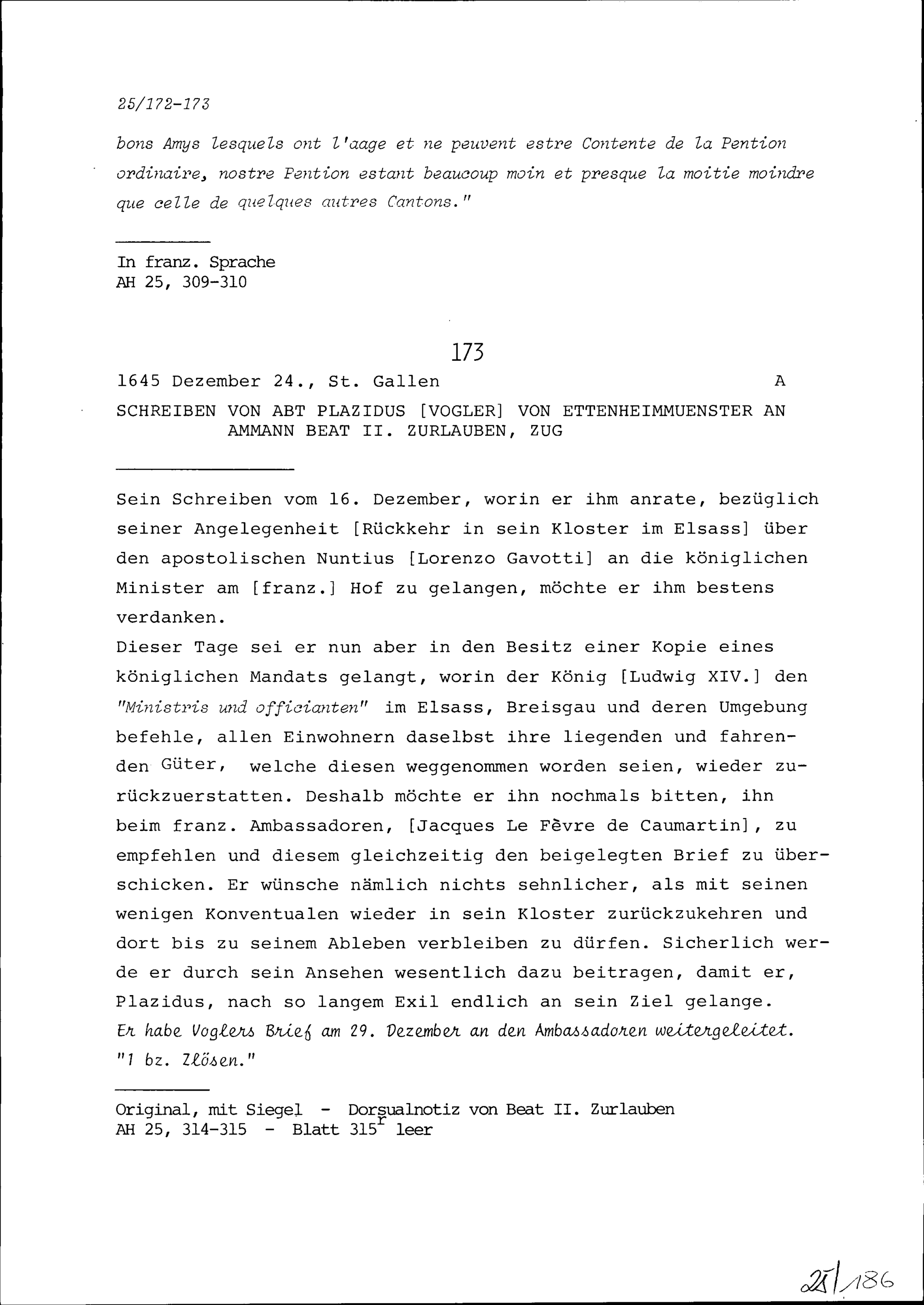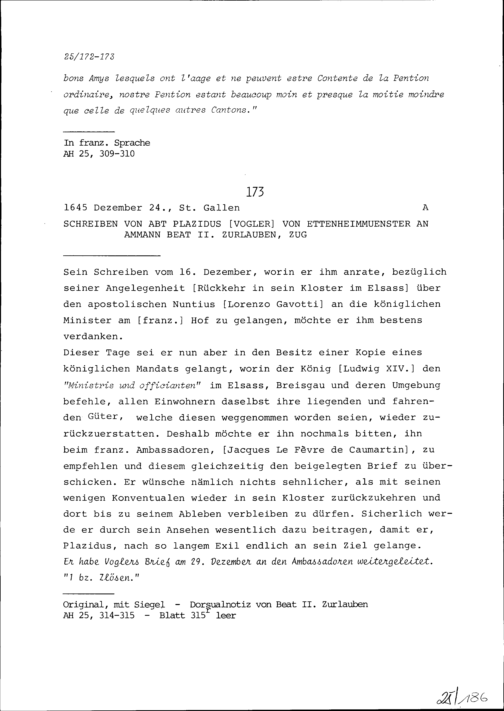 Notiz von Beat Jakob I. Zurlauben zuhanden von Robert-Vincent de Gravel, Ambassador...