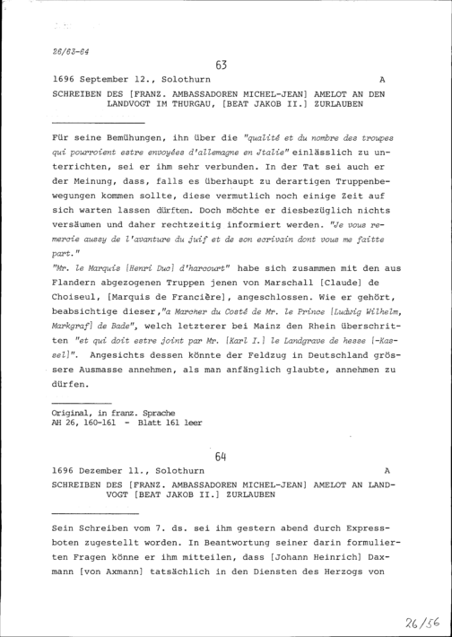 Schreiben von Michel-Jean Amelot, Ambassador von Frankreich, an Beat Jakob II. Zurlauben, Landvogt