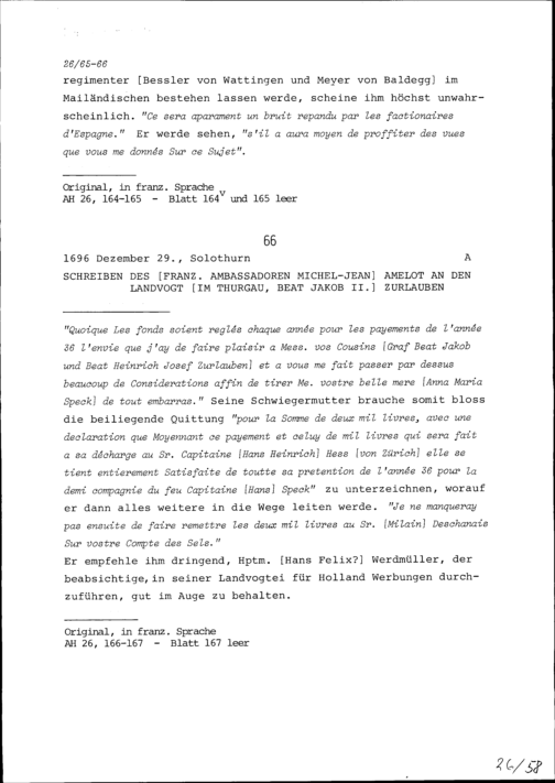 Schreiben von Michel-Jean Amelot, Ambassador von Frankreich, an Beat Jakob II. Zurlauben, Landvogt im Thurgau