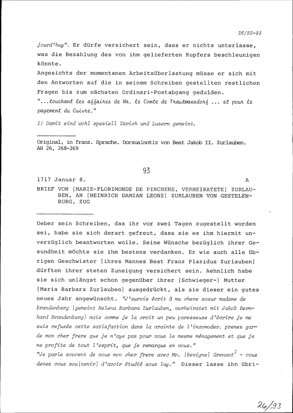Schreiben von Roger Brûlart, Marquis de Puysieux, Ambassador von Frankreich, an Beat Jakob II. Zurlauben, Landvogt