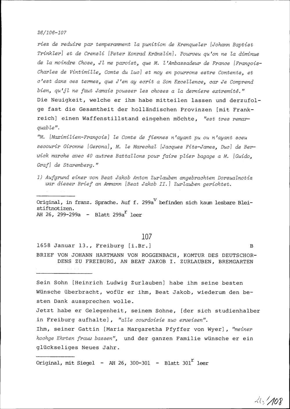 Schreiben von Lorenzo Verzuso, Marchese di Beretti-Landi, Ambassador von Spanien, an Beat Jakob II. Zurlauben