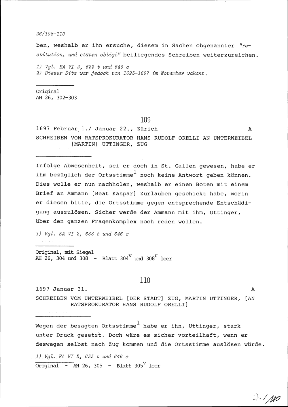 Schreiben von Hans Rudolf Orelli, Ratsprokurator, an Beat Kaspar Zurlauben, Ammann, Zug