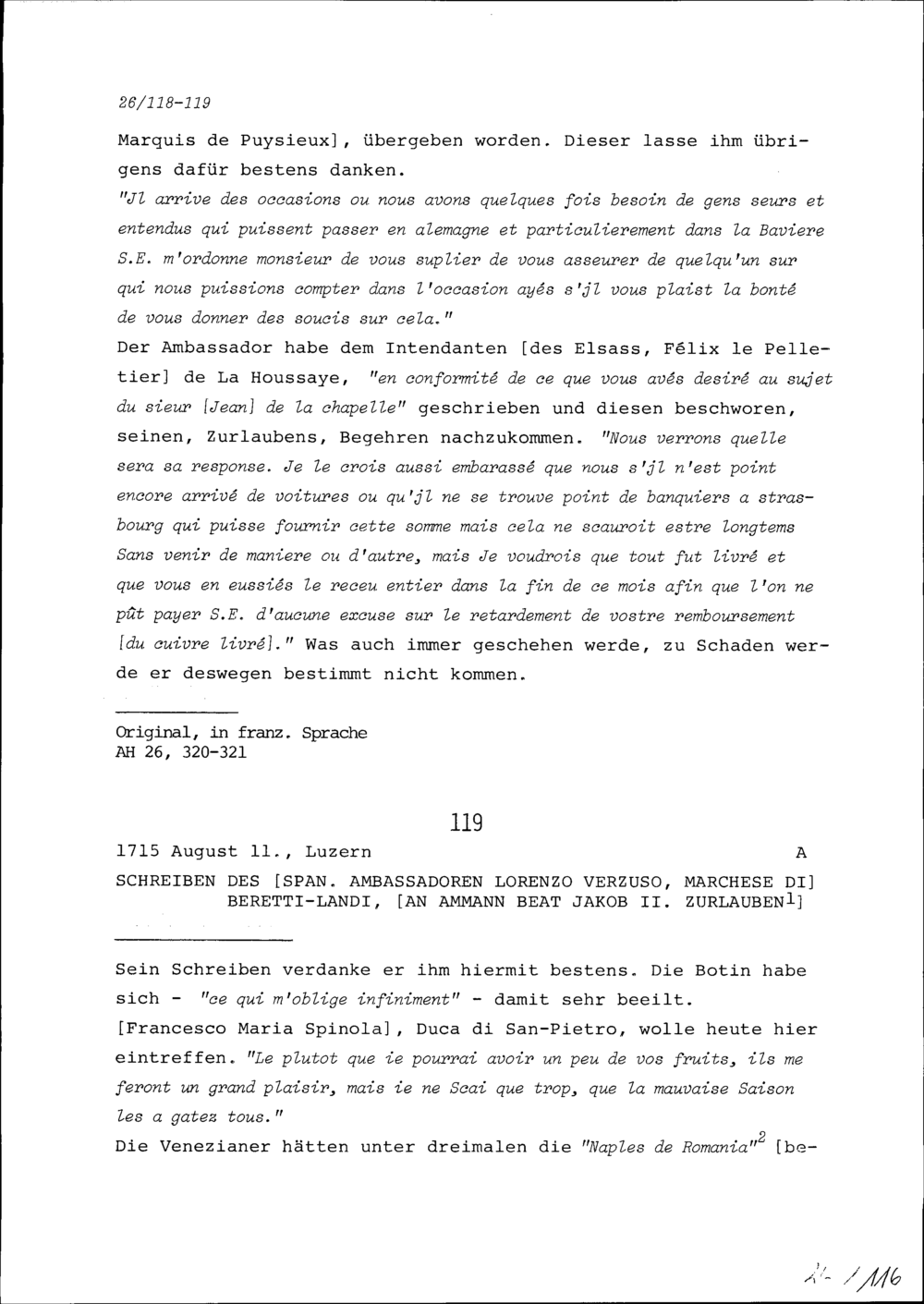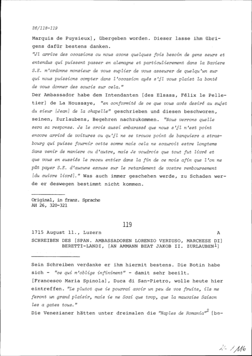 Schreiben von NN Deroiste an Beat Jakob II. Zurlauben, Landvogt