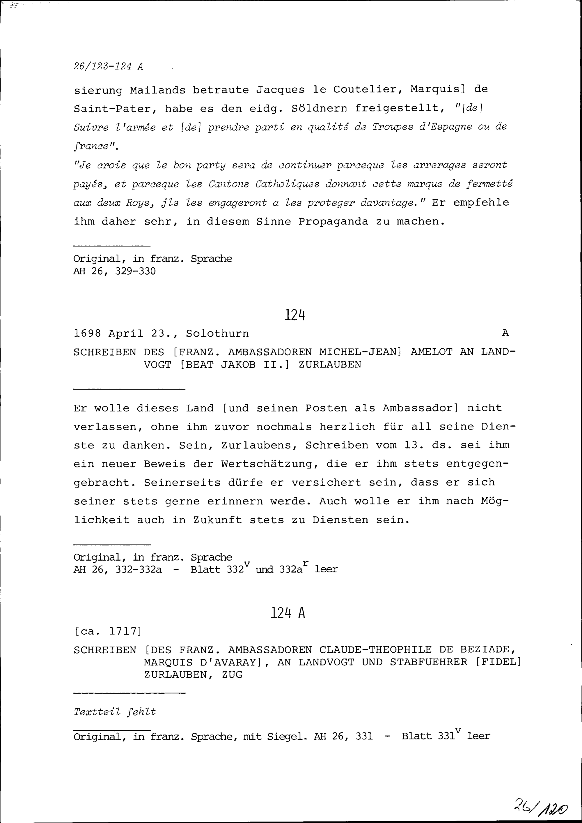 Schreiben von Claude-Théophile de Béziade, Marquis d'Avaray, Ambassador von Frankreich, an Fidel Zurlauben, Landvogt und Stabführer Zug