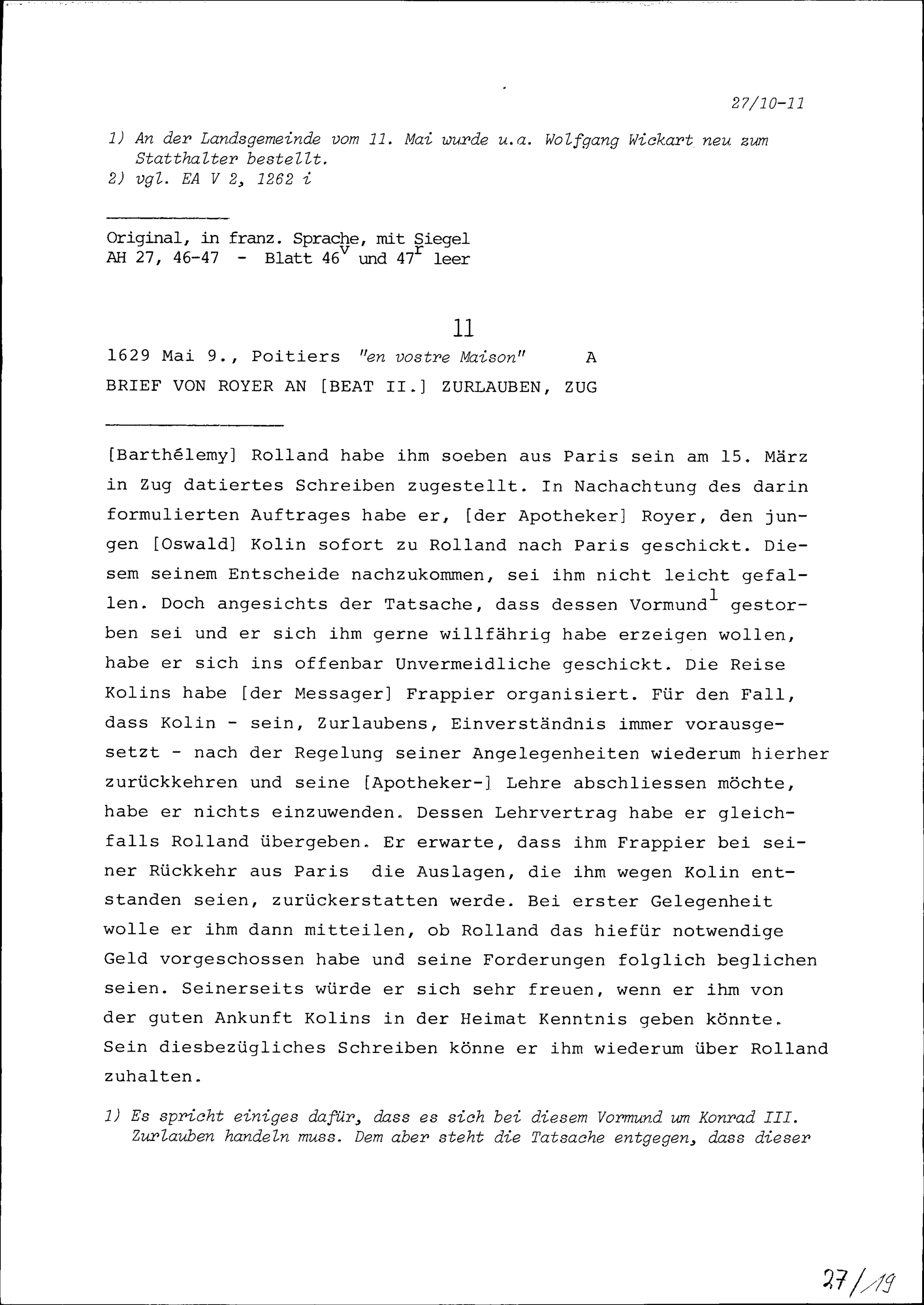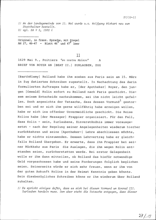 Schreiben von Jacques Le Fèvre de Caumartin, Ambassador von Frankreich, an Beat II....