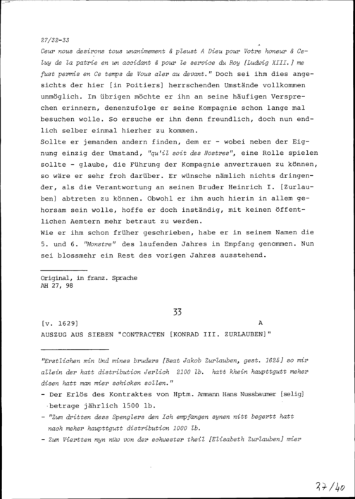 Schreiben von Franz Zurlauben an Konrad III. Zurlauben