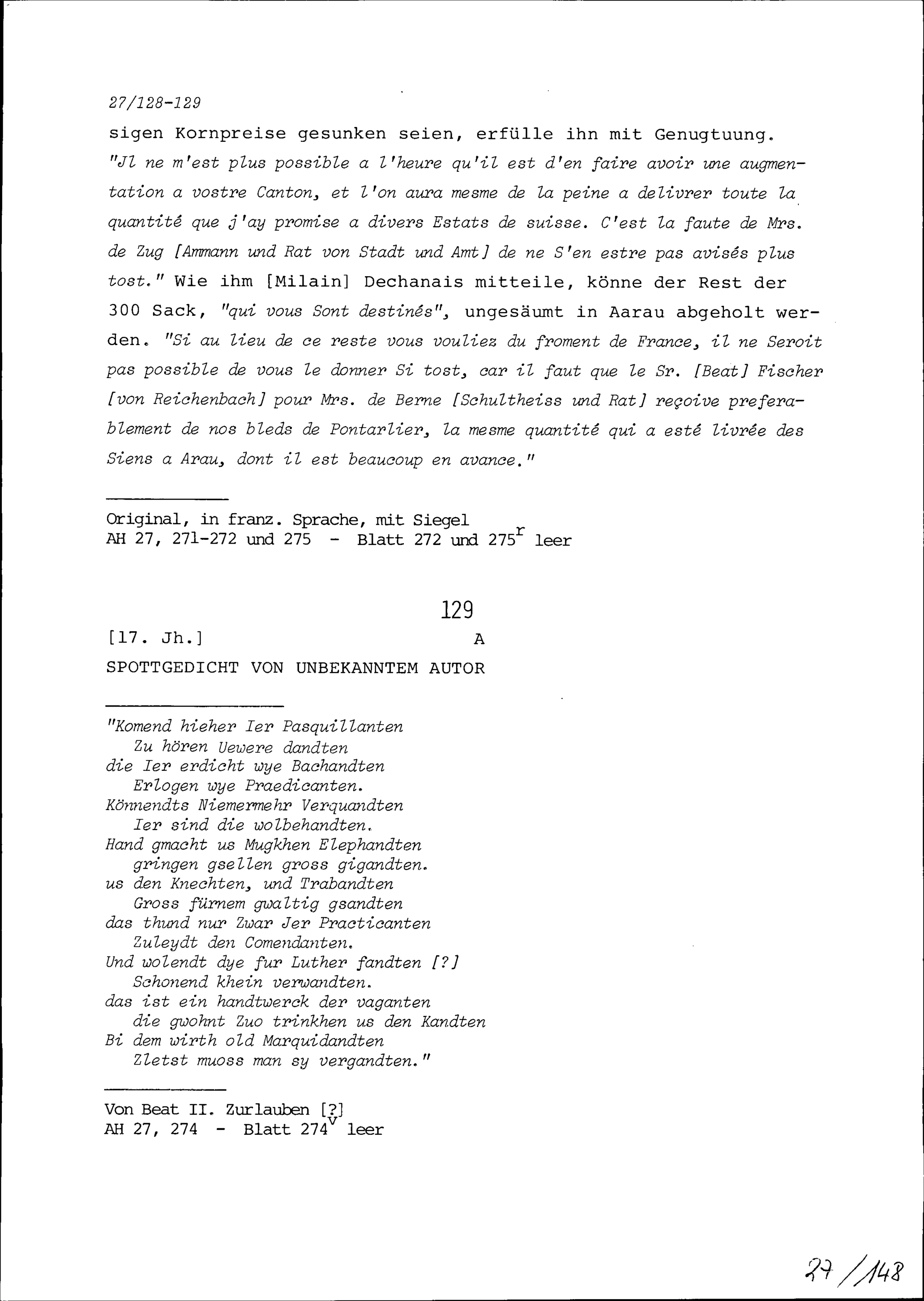 Schreiben von Michel-Jean Amelot, Ambassador von Frankreich, an Beat Kaspar Zurlauben,...