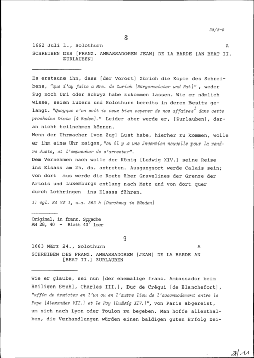 Schreiben von Jean de la Barde, Ambassador von Frankreich, an Beat II. Zurlauben