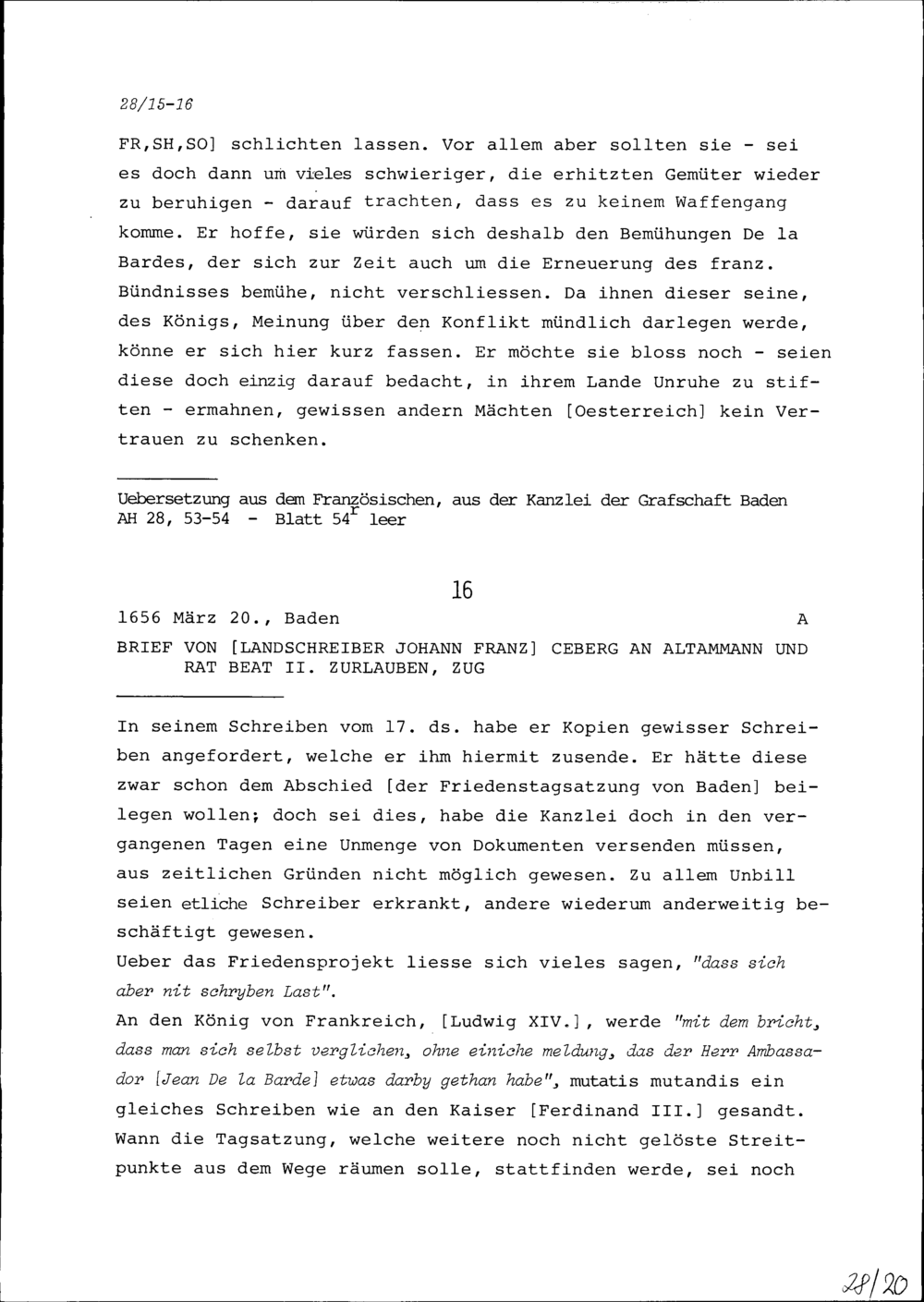 Schreiben von Ludwig XIV., König von Frankreich, an die Schultheissen, Landammänner und Räte der Sieben Katholischen Orte