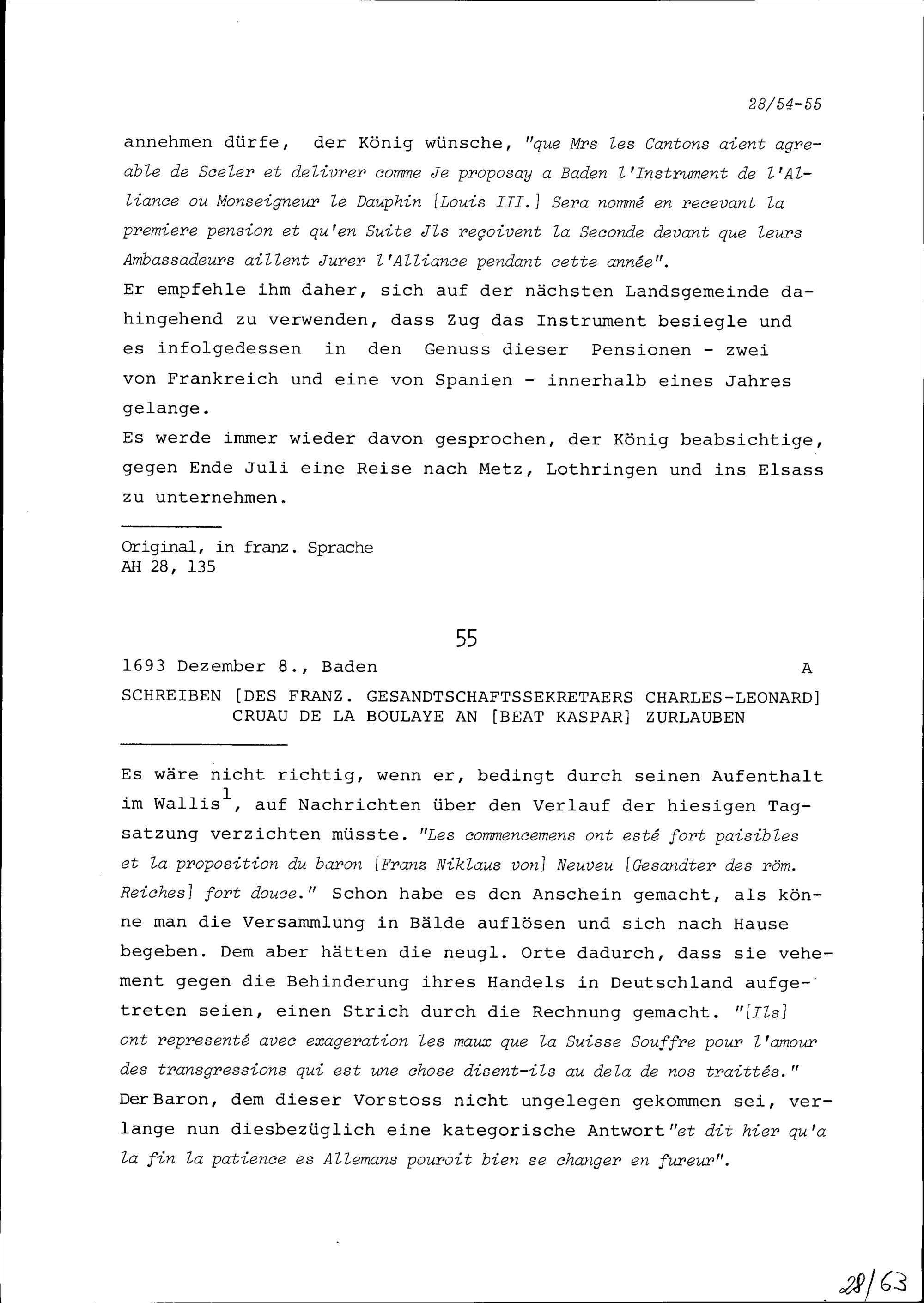 Schreiben von Jean de la Barde, Ambassador von Frankreich, an Beat II. Zurlauben