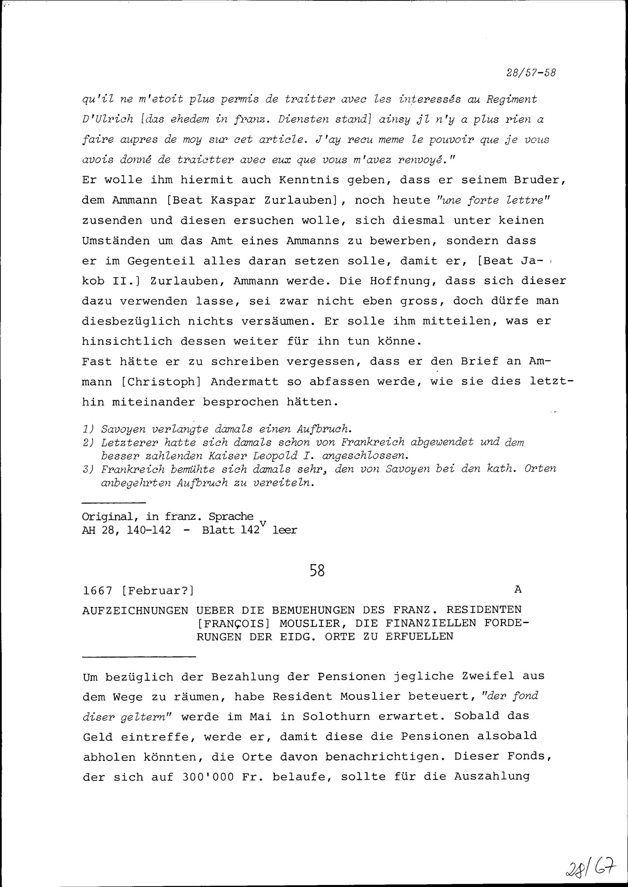 Schreiben von Roger Brûlart, Marquis de Puysieux, Ambassador von Frankreich, an Beat Jakob II. Zurlauben, Landvogt