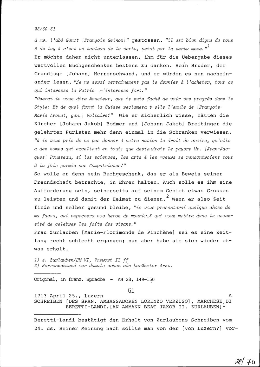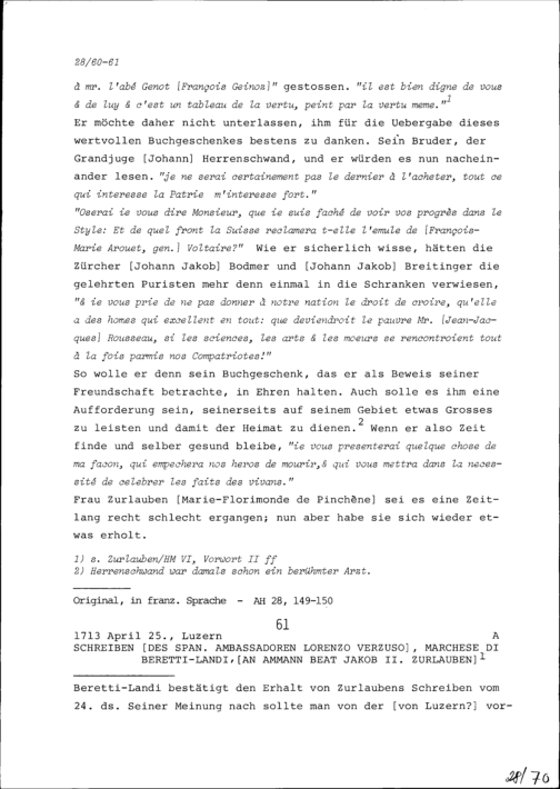 Schreiben von Johann Friedrich Herrenschwand an Beat Fidel Zurlauben