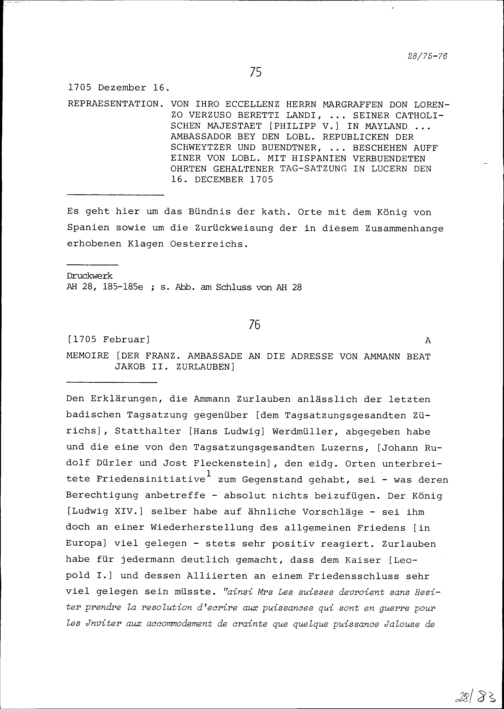 Schreiben der französischen Ambassade an Beat Jakob II. Zurlauben, Ammann