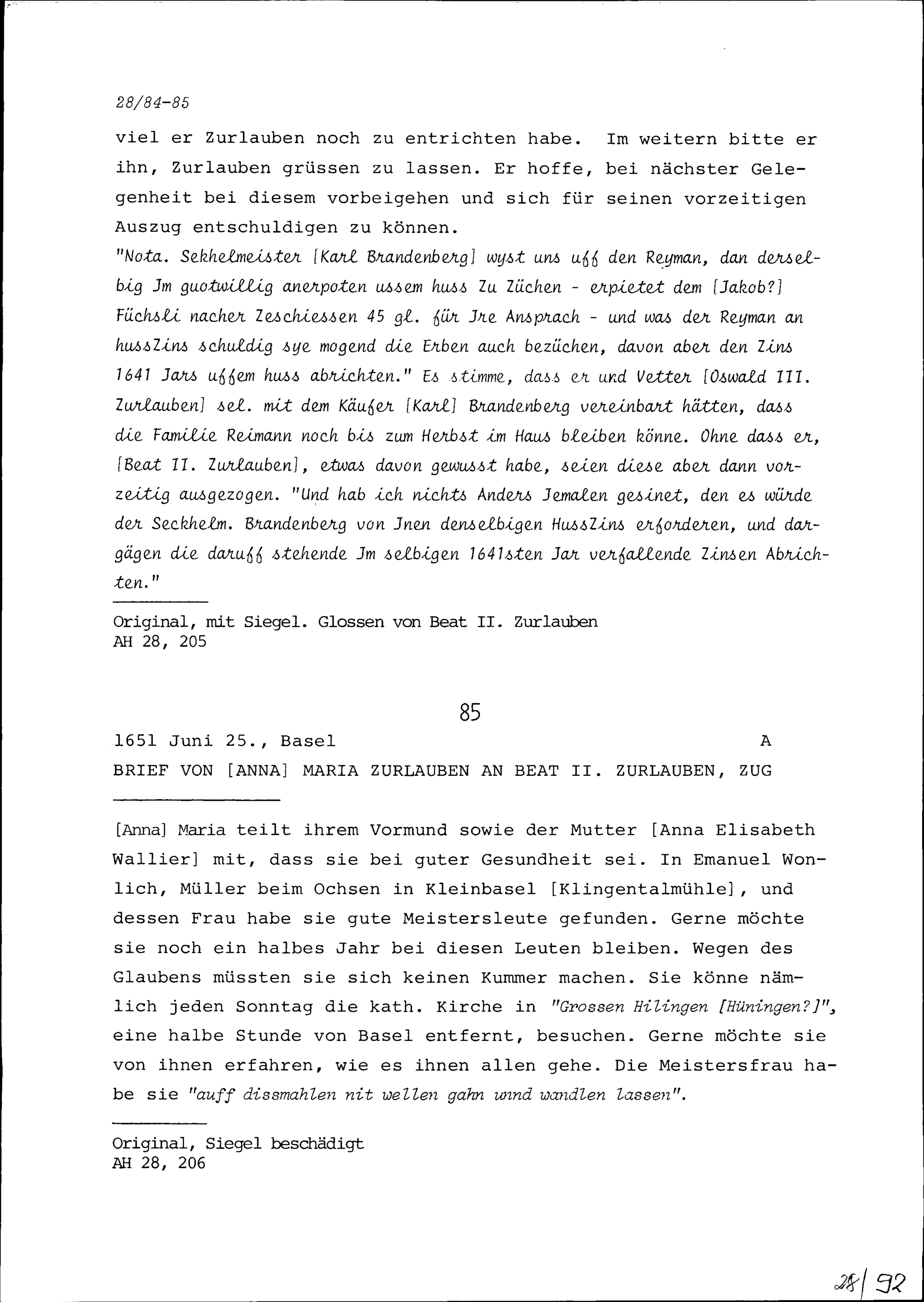 Schreiben von Hans Jörg Reimann an Adam Signer, Landschreiber, Zug